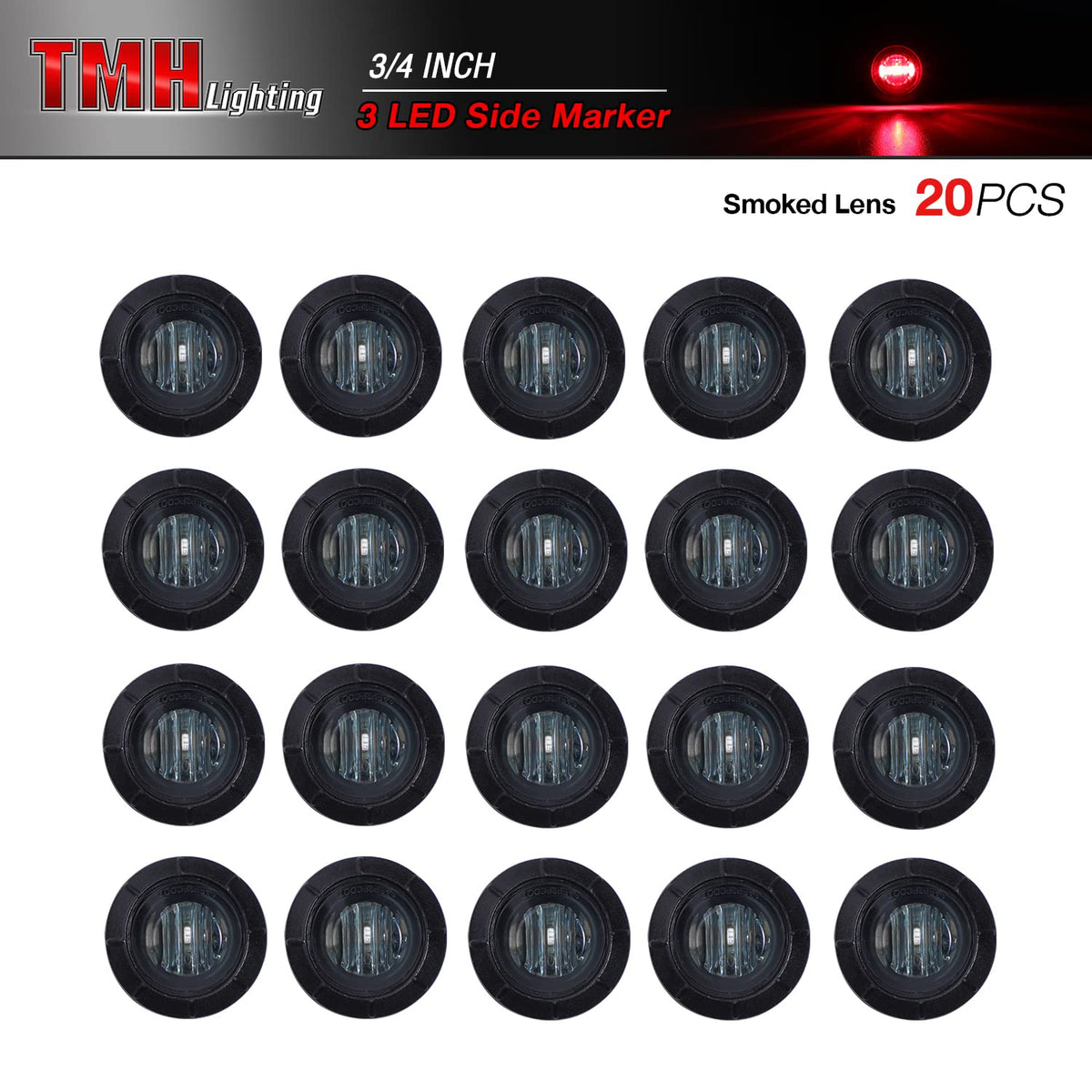 Tmh 3/4 Inch Mount Smoked Lens Red Led Small Clearance Side Led Marker Lights Trailer Truck Rv Atv Car Bus Van (Pack Of 20)