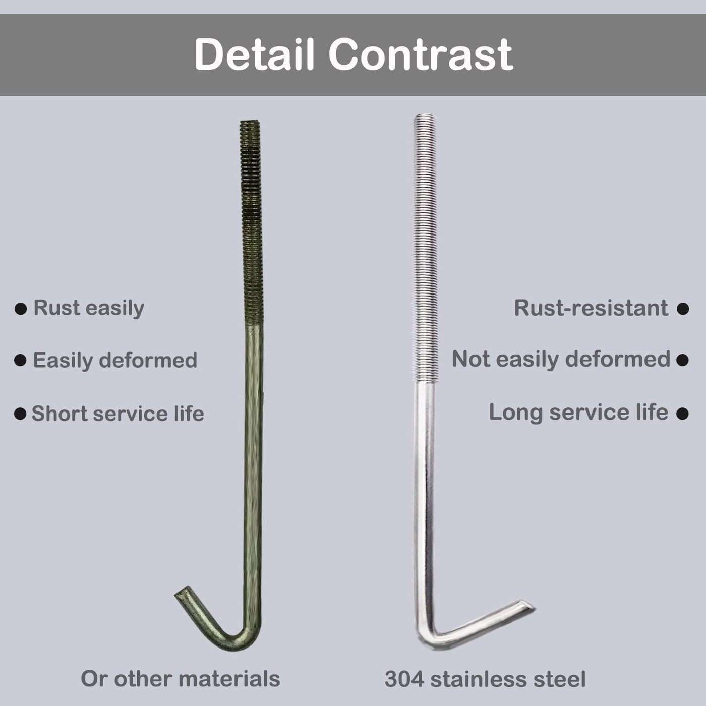 Tnisesm 10-Inch 304 Stainless Steel J Hook Battery Hold Down Bolts