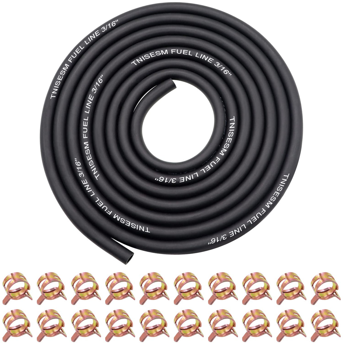 Tnisesm 3/16 Inch Id Fuel Line Hose 10 Feet + 20Pcs 2/5' Id Hose Clamps For Kawasaki Kohler Briggs & Stratton Small Gas Diesel Powersports Engines And Generators