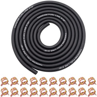 Q: How many hose clamps are included with the fuel line?A: The package includes 20 pieces of 2/5" ID hose clamps to securely fix the fuel line in place.