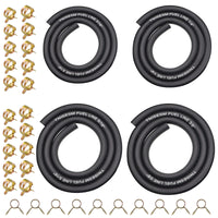 Q: What accessories are included with the fuel hose kit?A: The kit comes with 40 pieces of hose clamps, which help secure the fuel hoses effectively. These clamps ensure a tight fit and prevent leaks, making installation easier and more reliable.