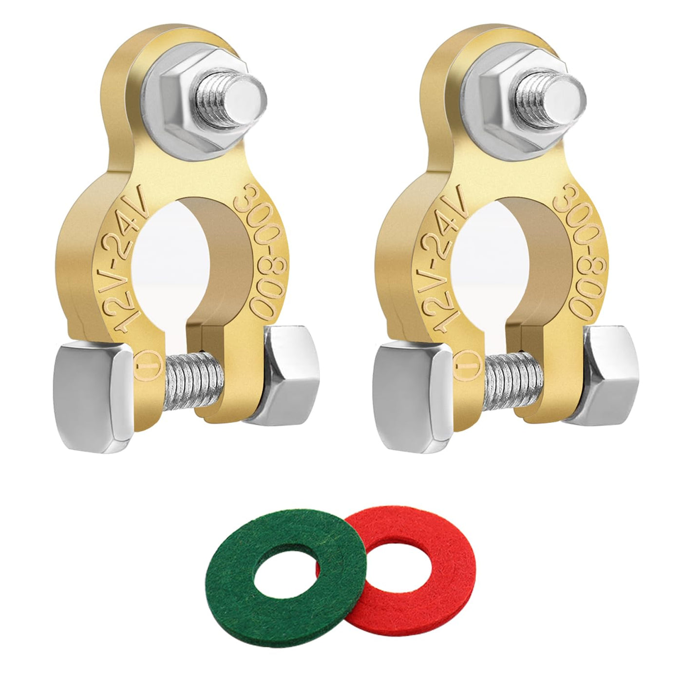 Tnisesm Brass Battery Terminal Connectors With Anti-Corrosion, Battery Terminals M8 X 16Mm Bolt, Top Post Battery Terminals Clam