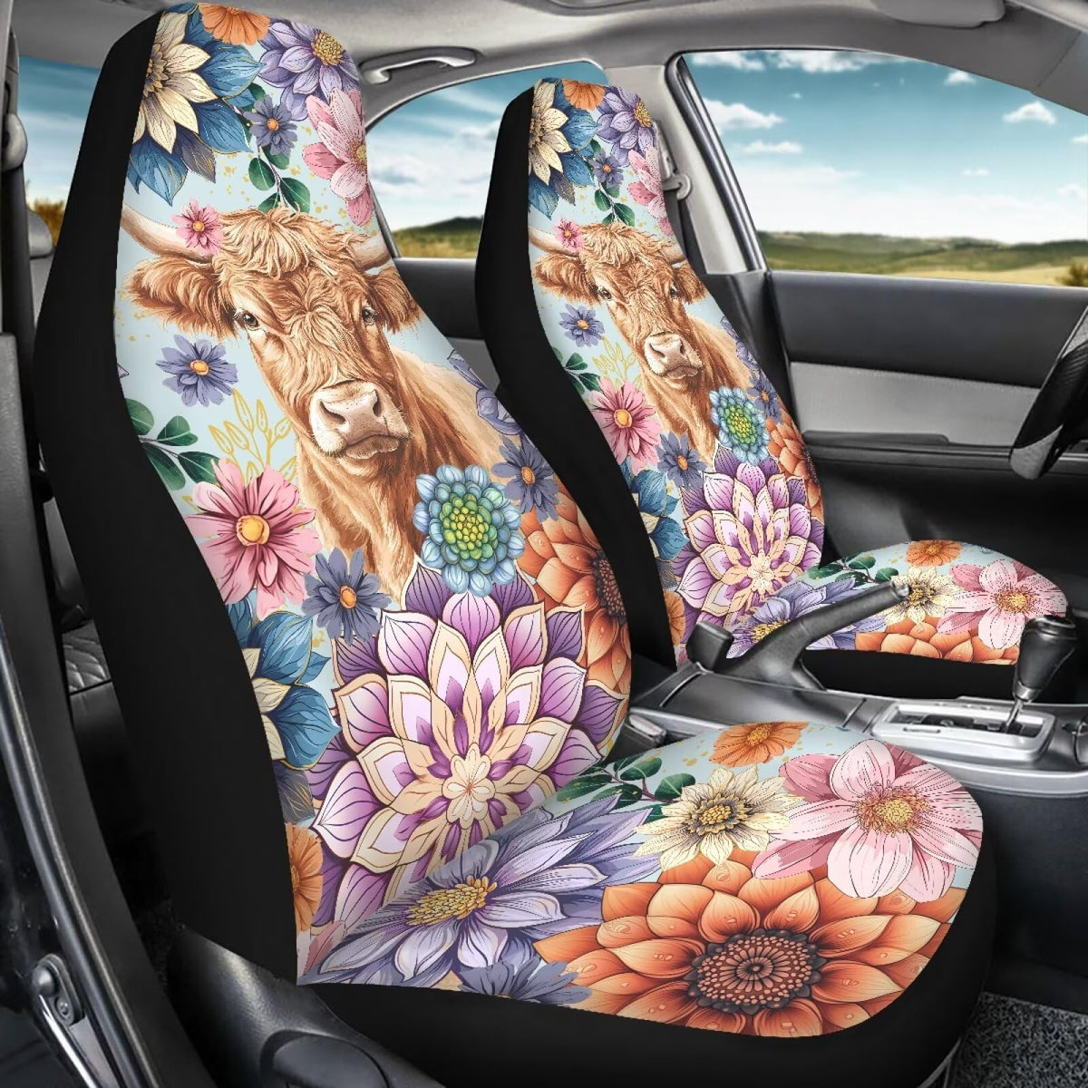 TOADDMOS Anti-Slip Car Seat Cover Front Seats Only,Boho Mandala Highland Cow Comfort Automotive Car Interior Covers Vehicle Cush
