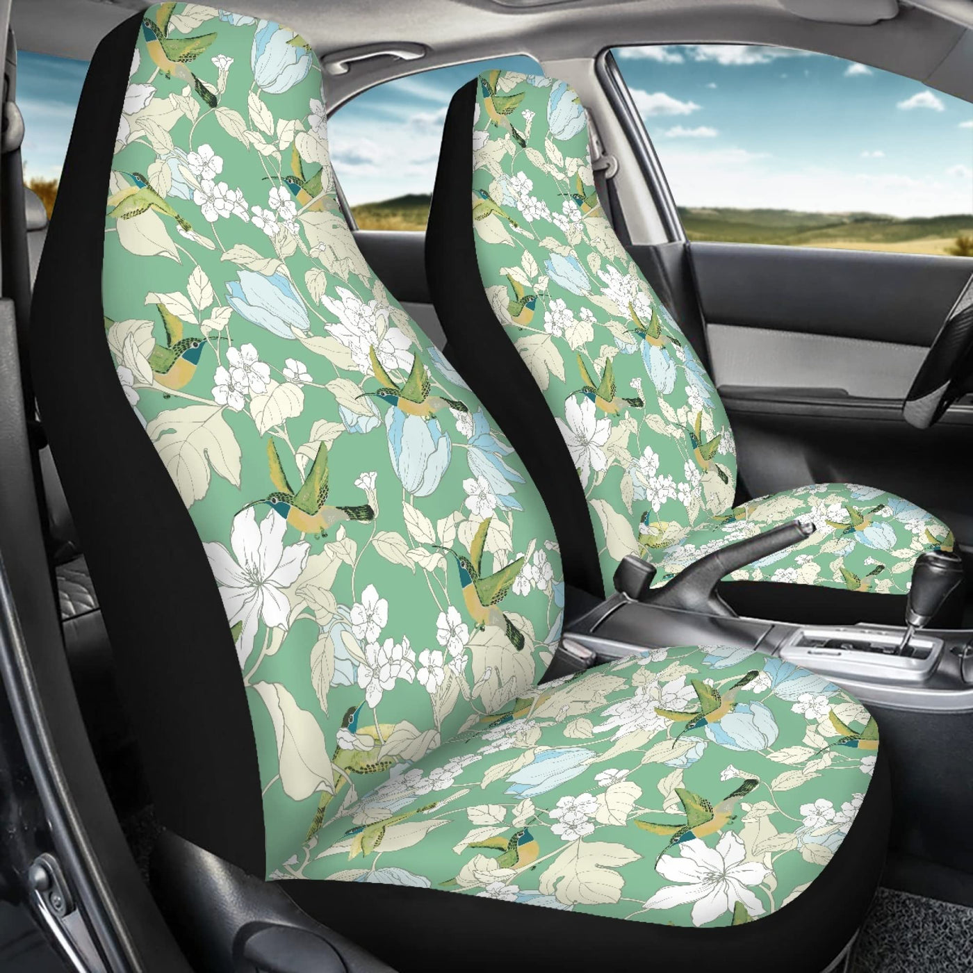 Toaddmos Auto Front Seat Cover, Floral With Hummingbird Print Universal Car Seat Cover Protector, Fit Most Vehicle Decorative Se