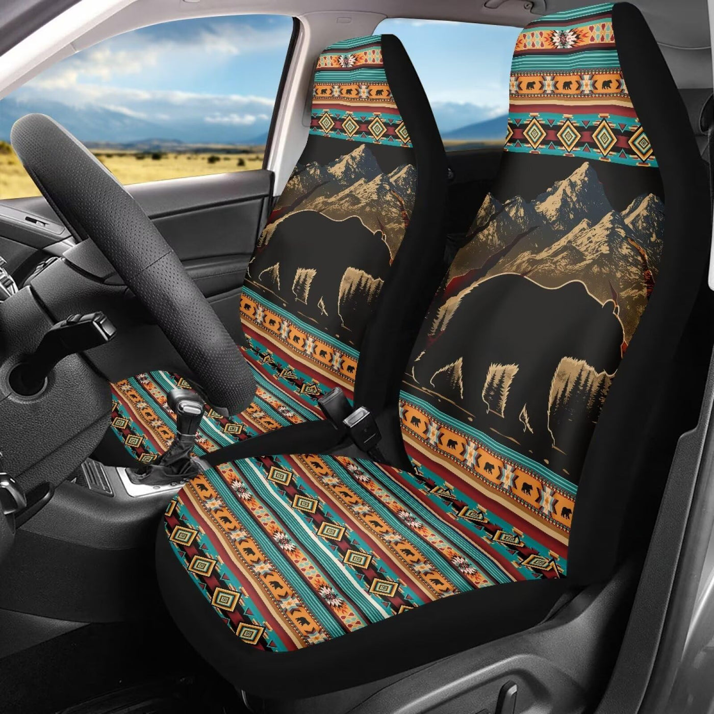 TOADDMOS Two Front Car Seat Covers Forest Bear Navajo Bear Automotive Car Interior Covers Vehicle Cushion Seat Cover Set Univers