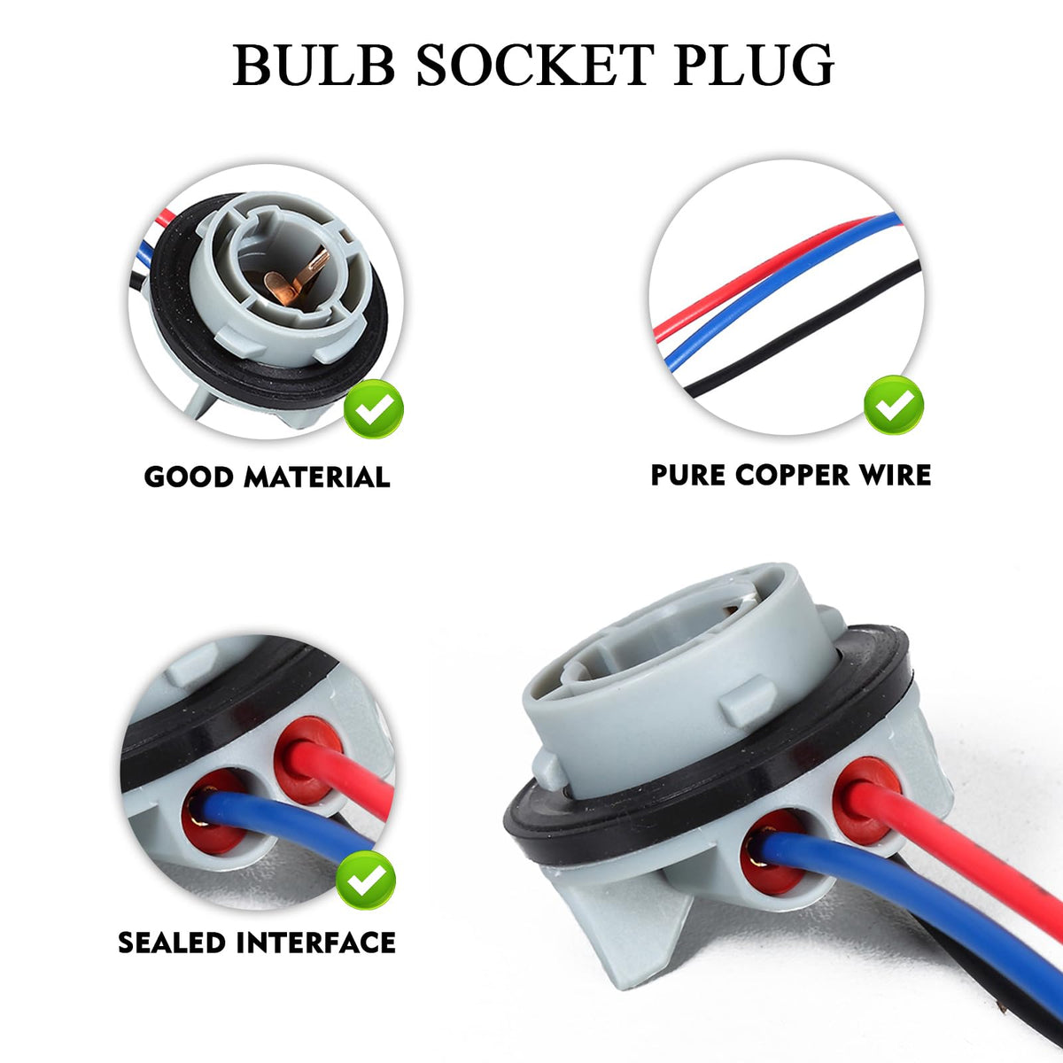 Tobenbone 1157 LED Bulb Socket Holder, Waterproof Turn Signal Tail Light Brake Light Base Plug Connector, Backup Light Pre-Wired