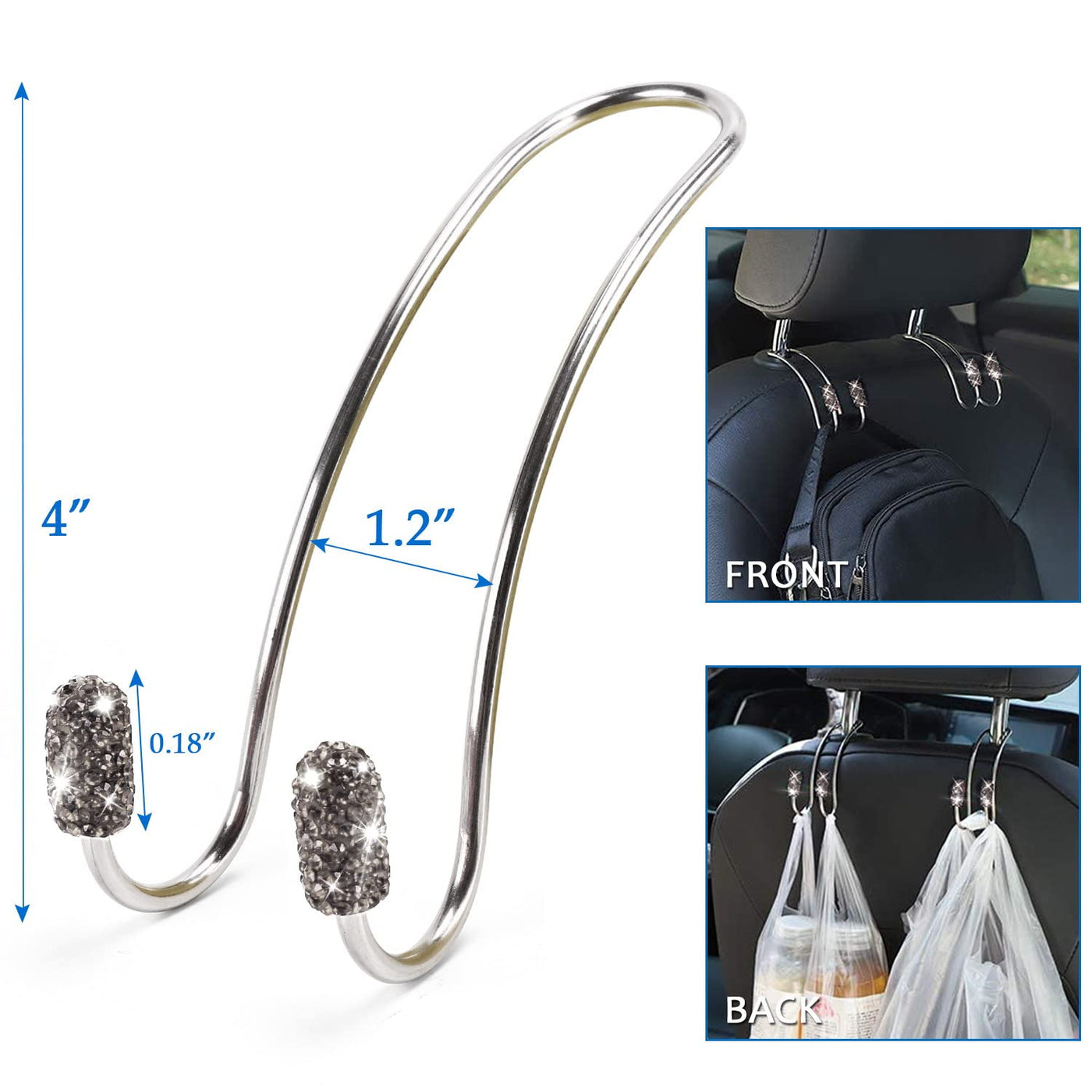 Reminder: Car Coasters: ·Fit well for most front and rear cup holder.Car Headrest Collars Ring: ·Notes:please ensure its the right size for your car before you order Car usb charger: ·Applicability:compatible with iOS and Android,Can charges your iPad,iPhone,Phones,etc Car Hooks Headrest Hangers: ·Max Load 44lbs:Also is a Perfect mask hook Bling Start Stop Button Rings: ·Please DO NOT apply to car ignition if your car has ANTI THEFT AlARM or Key Fob with a Chip! If you have a key with a Chip in it - this ring can cause interference with the transponder in your key and the ignition and you may not be able to start your car. Bling Tire Valve Stem Caps: ·Don't screw the knob cover too tightly in case you can't take it off