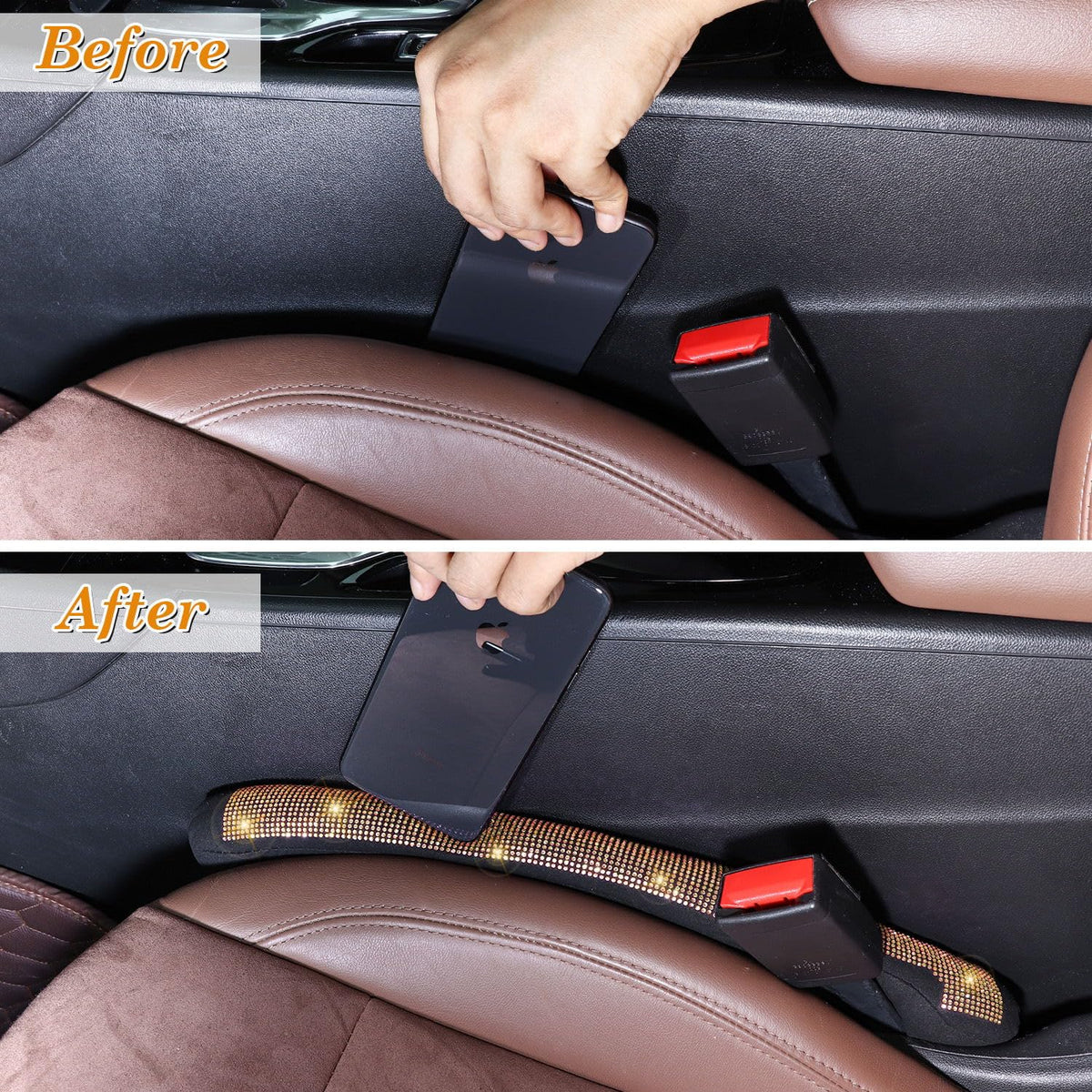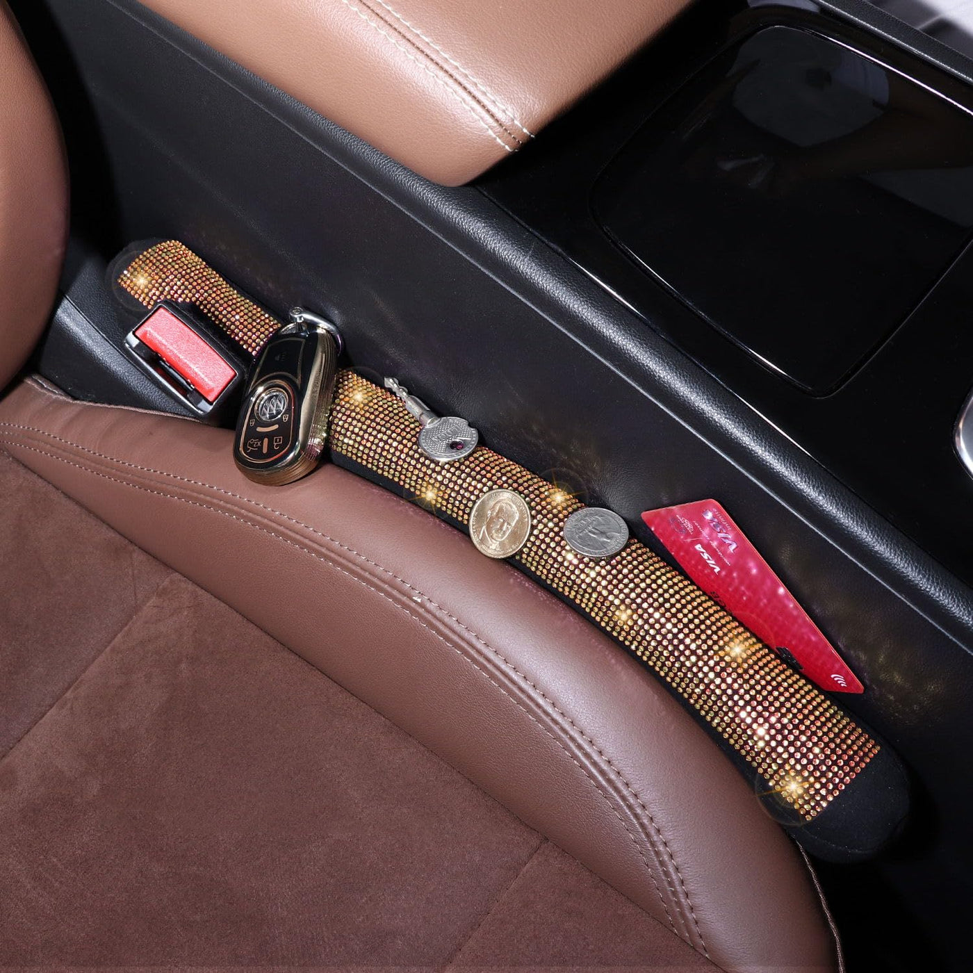 Tobequeen Beige Seat Gap Filler, Handmade Crystal Diamond Rhinestone Champagne Bling Car Accessories For Women, Universal Fit Fo