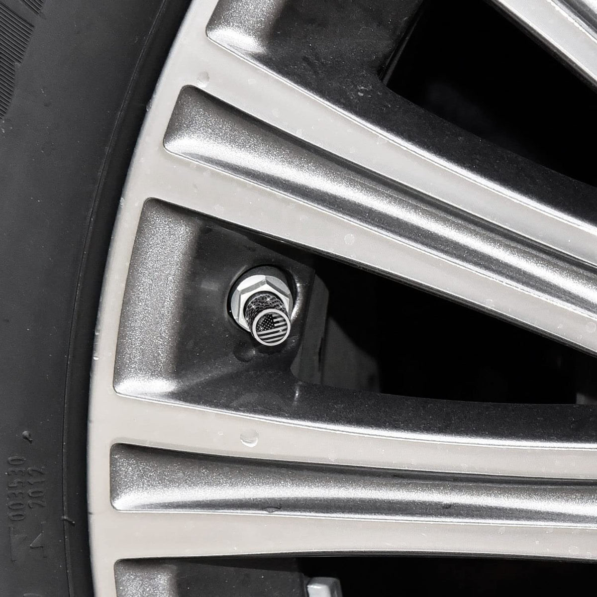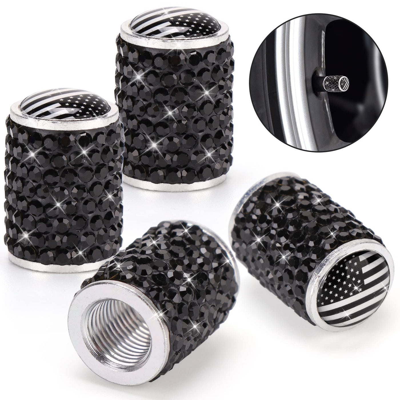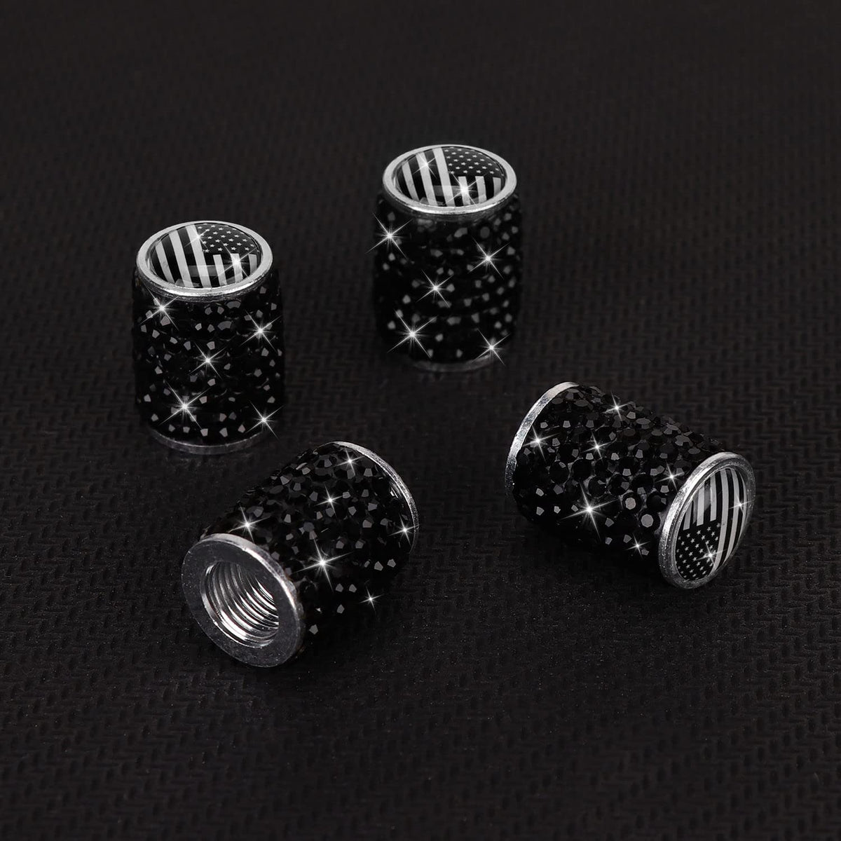 You'll never find an aluminum bling bling black american flag car accessories so shiny and durable like this item!!!Feature:Anti-Leakage: The inside rotating thread structure tire valve stem caps can fastened tightly with tire stem.Abti-Rust: These bling black tire air caps 4 pack can effectively prevent the valve from being covered with dust/snow/rainwater. extend the life of the tire.Strong and Sturdy: The black glitter tire valve caps don't fade or break up during car washesThe diamond valve stem covers add the perfect touch of bling to tires, you will get MANYCOMPLIMENTS!Specifications:Color: WhiteMaterial: Aluminum alloy + RhinestoneDrilling Process: HandmadeSize: 0.86''x 0.55''(H*W)Universal Fits: all standard American (Schrader) valvesPackage4 * diamond black tire caps*** If you have any question please let me know,we are provide best service for you ***