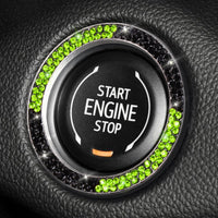 Tobequeen Bling Black Green Push Start Button Cover Emblem Sticker, Crystal Diamond Rhinestone Start Button Ring Car Decor, Gree