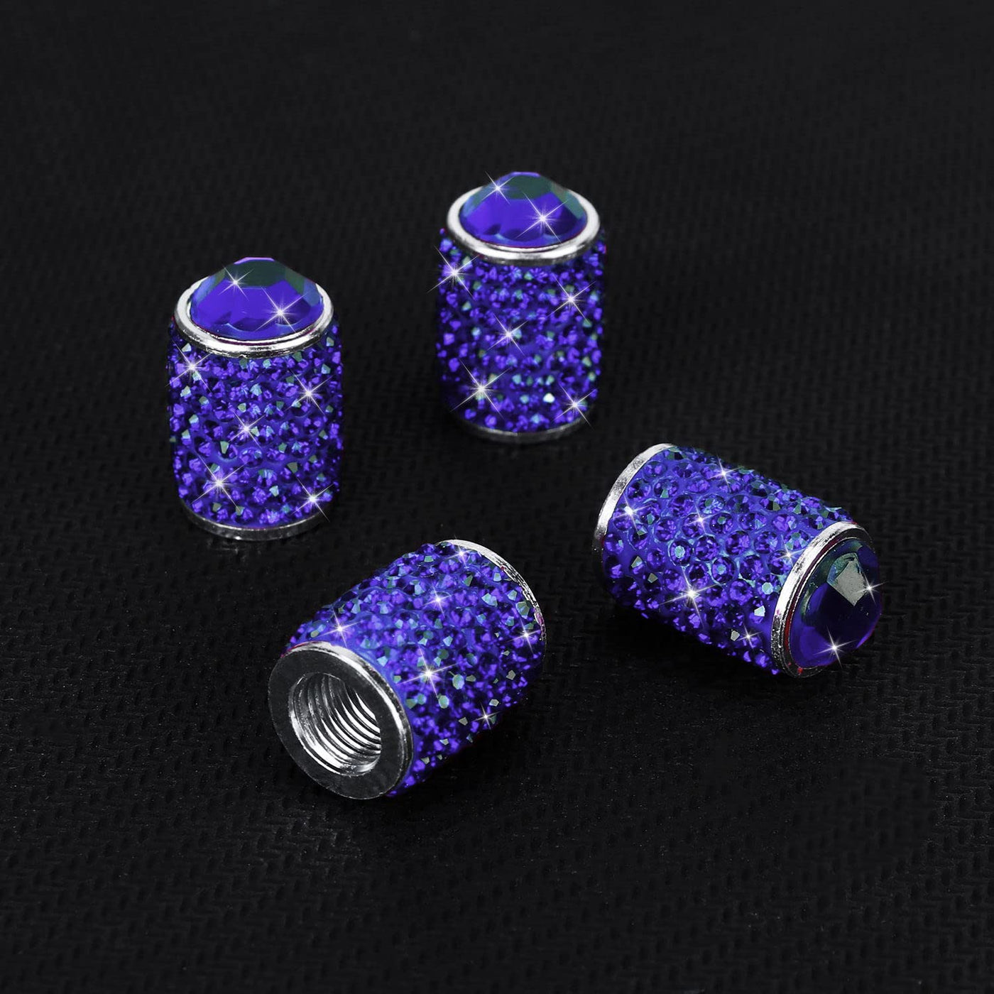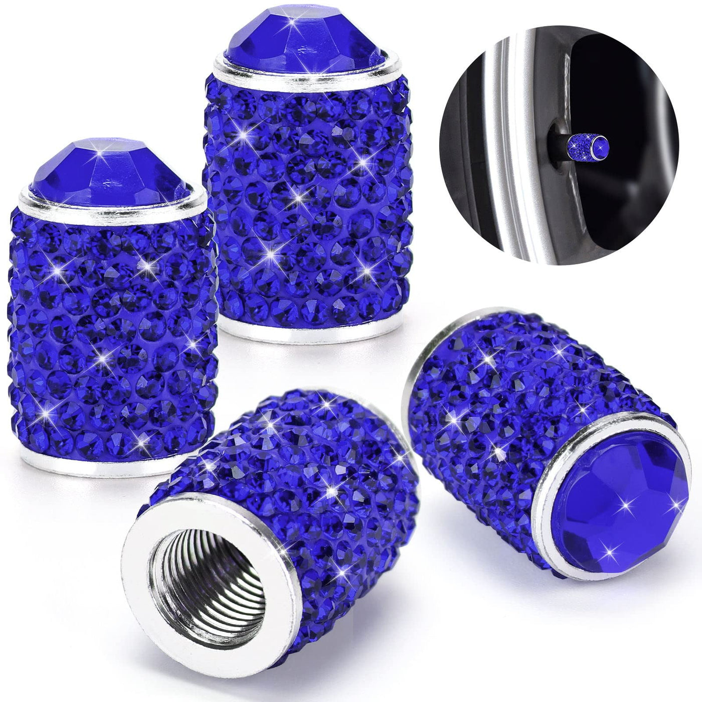 ToBeQueen Blue Bling Tire Calve Caps,4 Pack Handmade Crystal Rhinestone Royal Blue Stem Caps Universal Dustproof Bling Car Acces