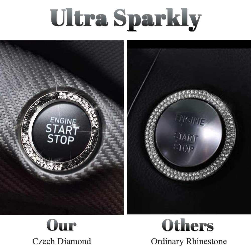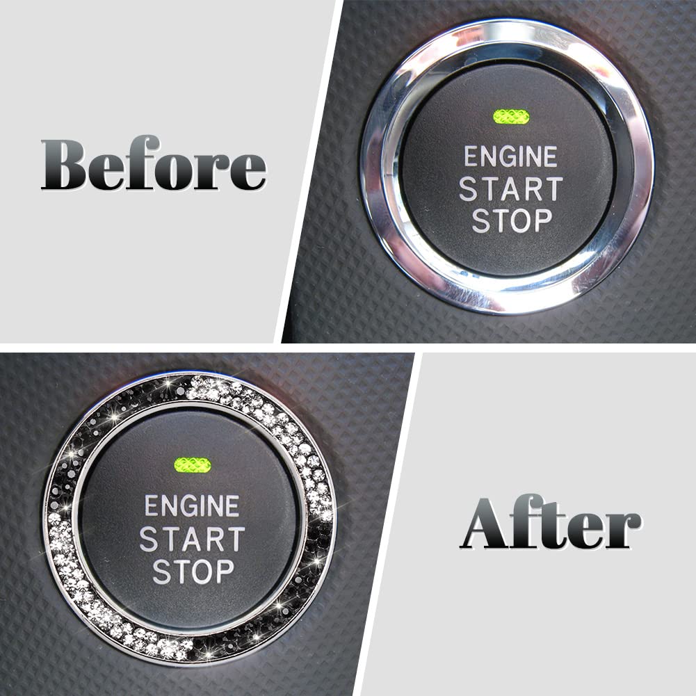 Noted for ToBeQueen Customer: please DO NOT apply this car push start button cover white to car ignition if your car has ANTI THEFT AlARM or Key Fob with a Chip! If you have a key with a Chip in it - this ring can cause interference with the transponder in your key and the ignition and you may not be able to start your car.If you have the misfortune to encounter this situation, please removed the white car accessories for women, Please confirm again and again to avoid unnecessary expenses.-------------4/10/2022ToBeQueen black and white car decal dress up your car a new fresh look,very easy to install and a cute little add on to any vehicle. Any problems, please feel free to contact us, we will help to solve all your problem as soon as possible.Fit All Standard Size Ignitions - Key Button (Size 1.5 in.)Versatile use on Ignitions, Knobs, Buttons etc.Multi-use:Key & Button StartersCar Knobs & ButtonsStick Shifts& MoreHow to install:1. clean the installation site2. tear off one of the tape film3. aim at the bottom of the ring, and press black and white car interior ring forcibly4. tear off the film on the other side of the tape5. aim at ignition button and press firmly6. successful and beautifulPackage include: and white bling car ring x 1 3M adhesive tape x 1This black white car decal will not fit for Compass/Renegade/Cherokee, 2016 VW Jetta,Ford Expeditions, Dodge Journey, Rogue, 21 Atlas Cross, Ford Taurus