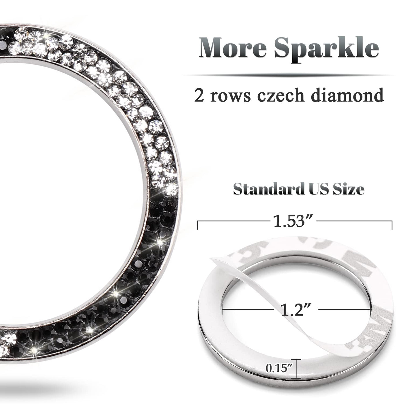 Tobequeen Car Bling Ring Crystal Car Stickers Rings Womens Car Decals,Bling Car Interior Accessory For Women,Black And White