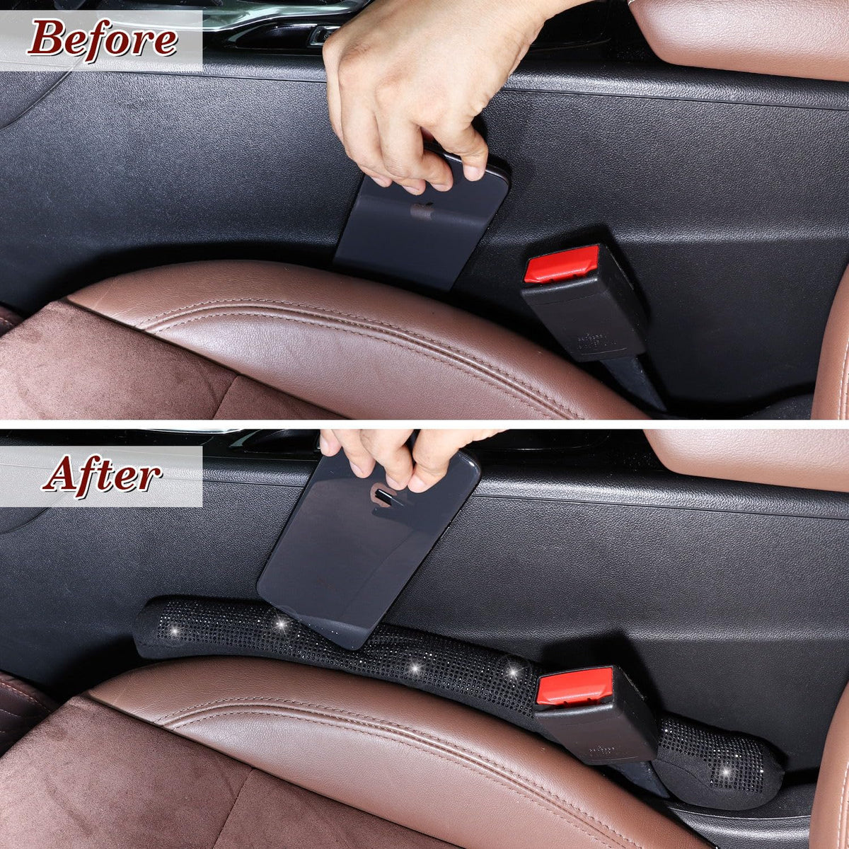 Tobequeen Car Seat Gap Filler Black, Bling Car Accessories For Women Universal Fit For Car Truck Suv, 2 Pack Handmade Crystal Rh