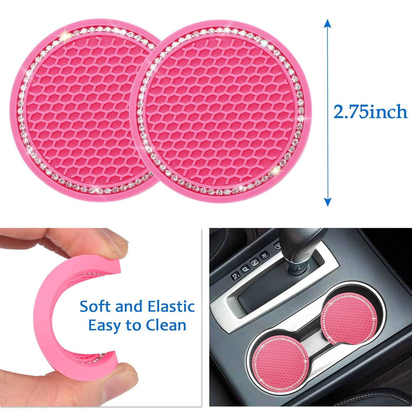 Bling Car Cup Holder: ·Size:Diameter 2.75 inch, thick 0.2 inch ·High Quality Silicone Material:The material is soft, elastic, feels good and is not easily deformed ·Easy to Clean:easily wash in the water faucet and brush it to clean ·Waterproof and Dust-proof