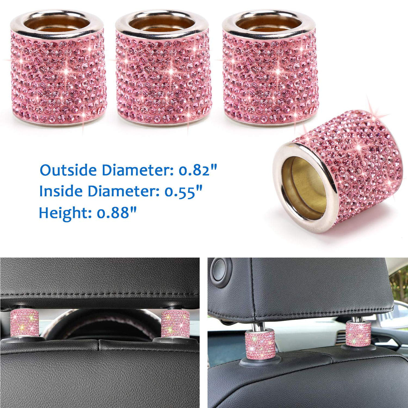 Tobequeen Pink Car Bling Accessories Set For Women 15Pcs,Head Rest Bling Rings,Bling Car Adapter Charger,Bling Car Hangers,Bling Cup Coaster,Bling Tire Valve Covers,Car Ignition Ring(Pink)