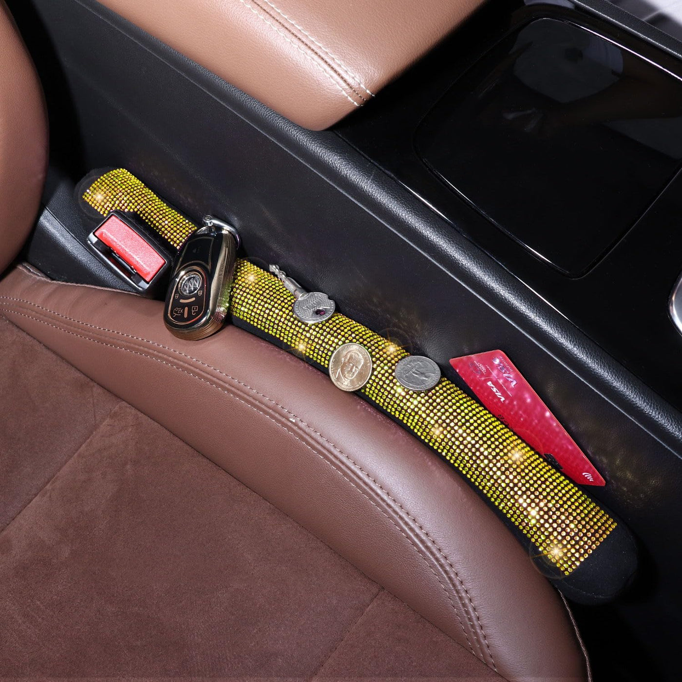 Tobequeen Yellow Car Gap Filler 2 Pack, Seat Gap Plug Universal Fit For Car Suv Truck, Handmade Crystal Diamond Rhinestone Yello