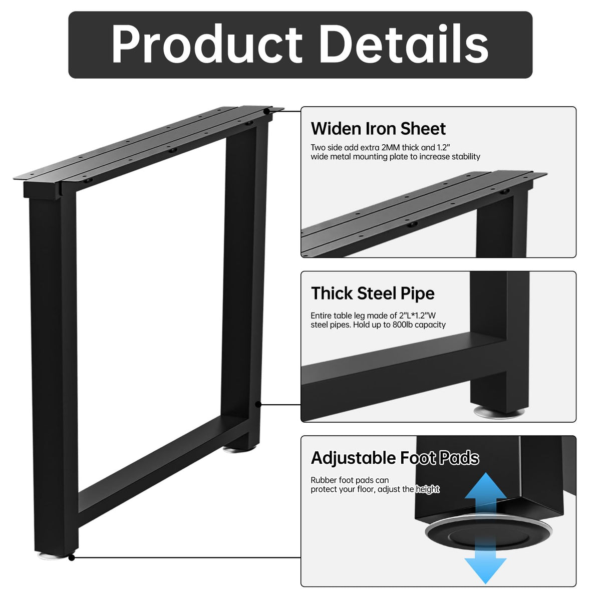 Q: Are the leg height and width adjustable?A: While the height of the TOCRETOARE Metal Table Legs is fixed at 28 inches, the upgraded screw-in rubber foot pads allow for minor height adjustments, helping to prevent table shaking and protect your floors.