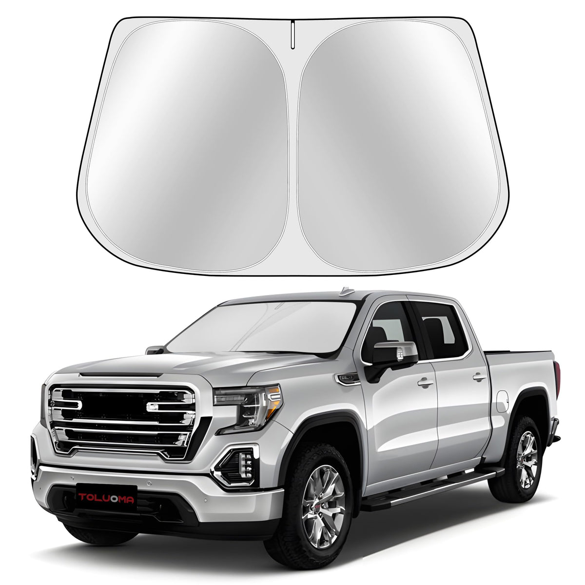 Toluoma Custom Fit Windshield Sun Shade For Gmc Sierra 1500 2500 3500 2019-2025 - Full Coverage, 210T Reflective Fabric, Blocks