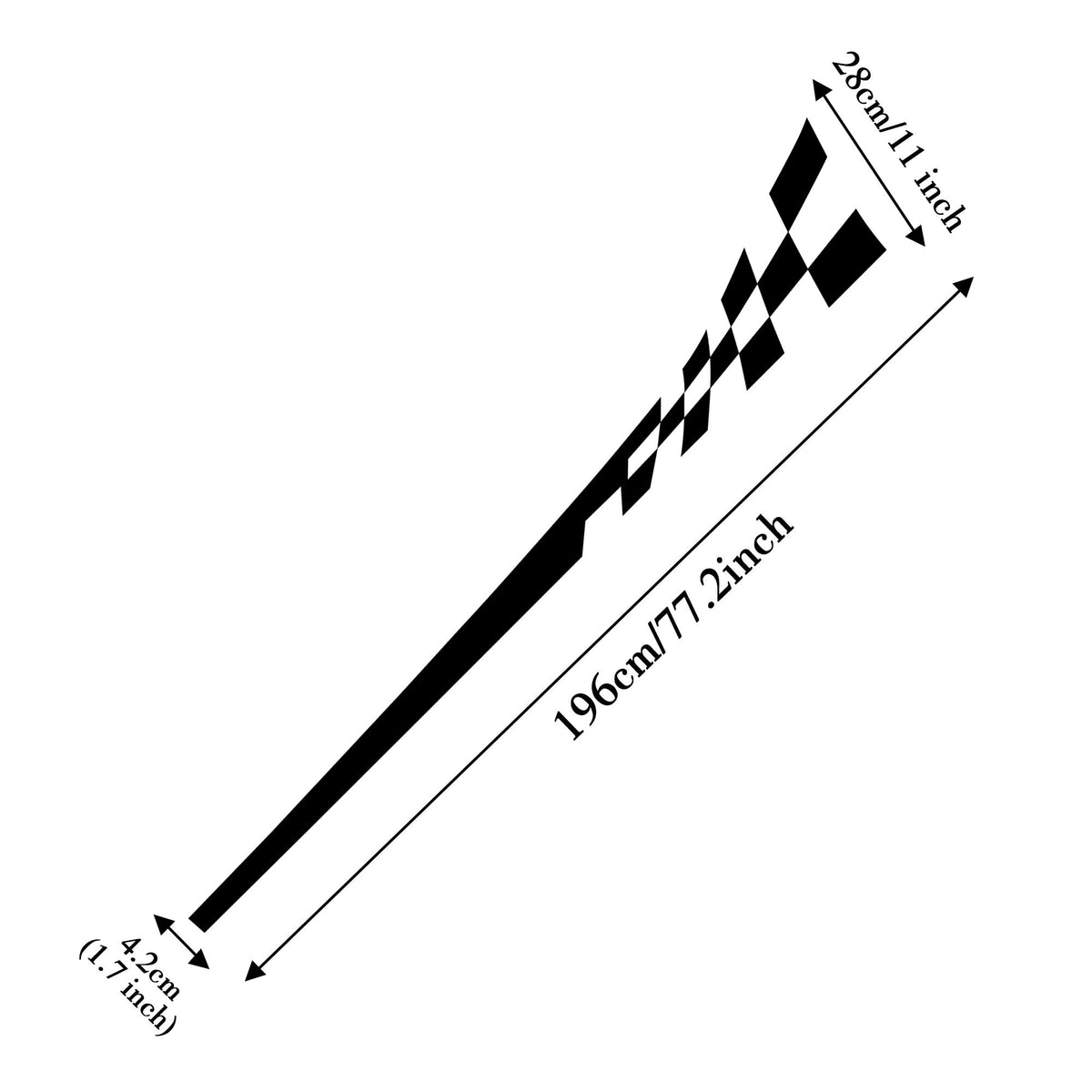 Q: What are the dimensions of the TOMALL Racing Checkered Flag Side Stripe Decals?A: The TOMALL Racing Checkered Flag Side Stripe Decals measure 196cm (77.2 inches) in length, making them suitable for a variety of vehicles including SUVs, trucks, and off-road vehicles.