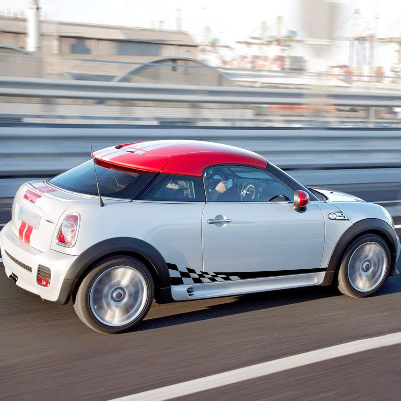 Tomall 1 Pair 77.2'' Racing Checkered Flag Side Stripe Decals Compatible With Mini Cooper Lattice Grid Stripe Graphic Waterproof