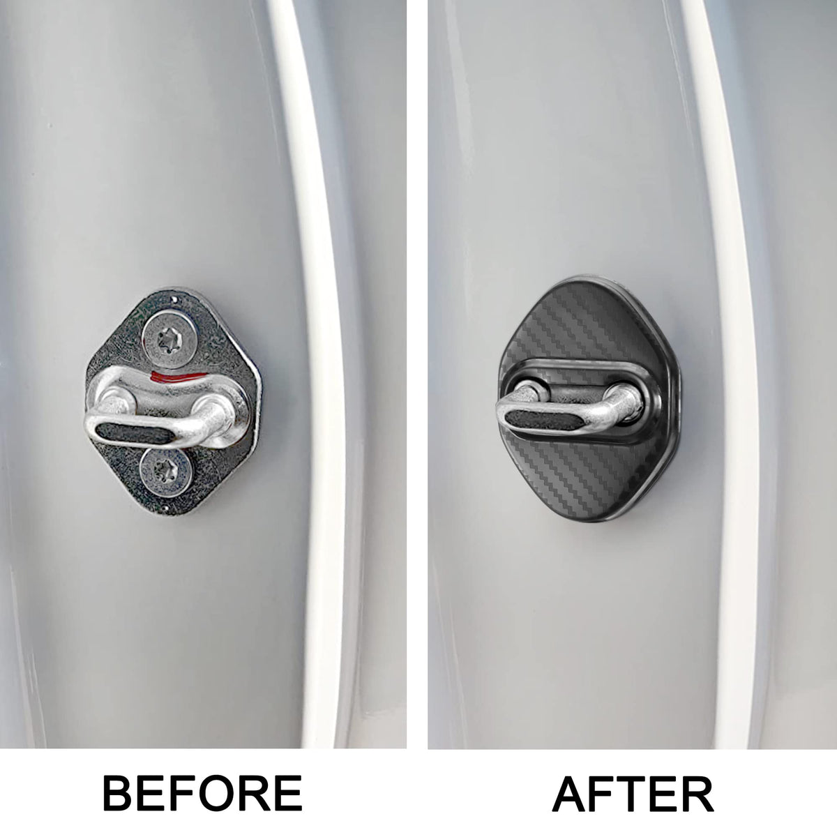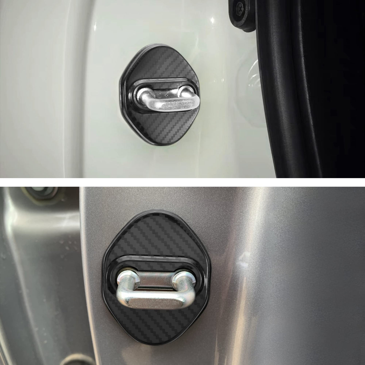 Q: What is included in the package of the TOMALL Car Door Lock Latches Cover?A: The package includes four pieces of the car door lock protective covers, all in the same carbon fiber color, to meet your car modification needs.