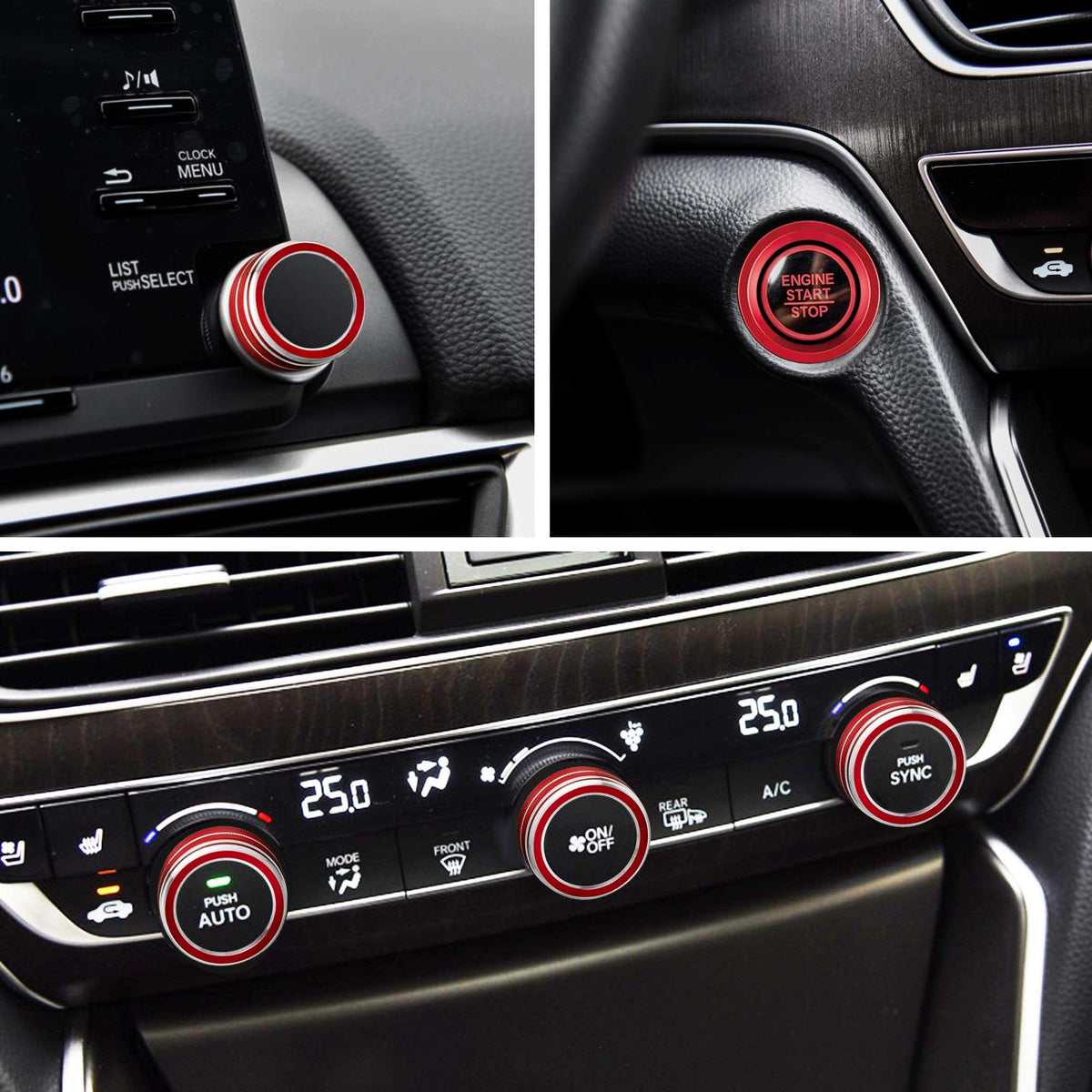 Tomall 6Pcs Aluminum Centre Console Switch Cover Compatible With Honda 10Th Accord Sedan Sport Ex Ex-L Lx 2018-2022 Sound Volume Knob Ac Air Conditioning Knob Engine Start Stop Button Cover Trim (Red)