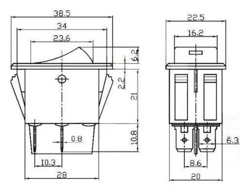 Q: What are the dimensions of the TOMALL Fog Light Toggle Switch?A: The mounted size of the switch is 35 x 20mm (1.4" x 0.8"), and the overall size is 38.5 x 22.5 x 43mm (1.5" x 0.9" x 1.7").
