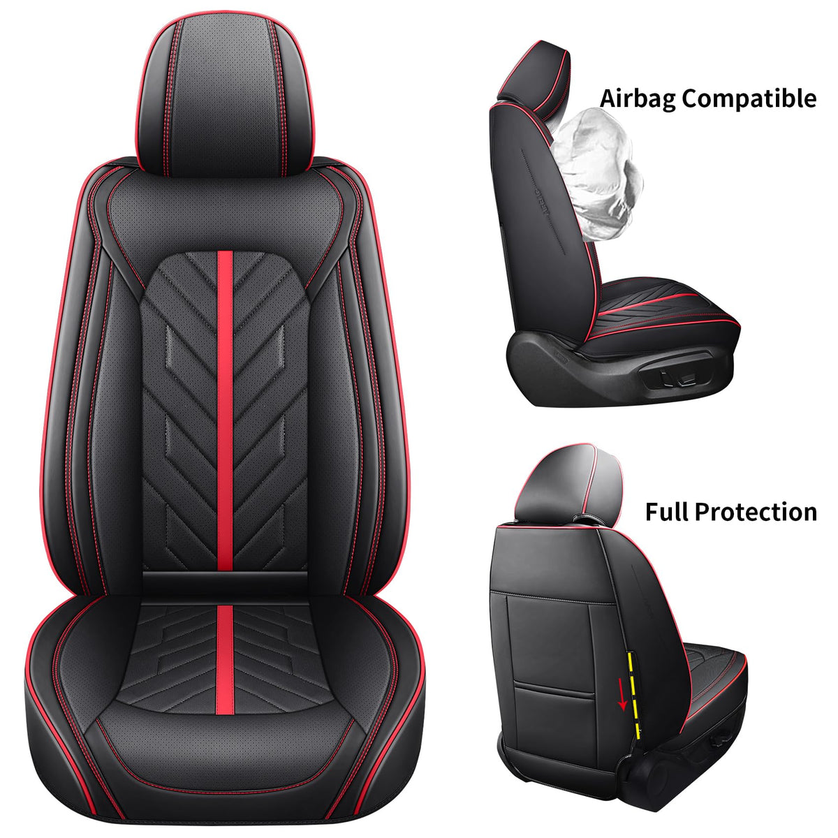 Tomatoman Car Seat Covers for most Car Sedan Truck Van Pickup SUVBrand:TomatomanColors:Black,Black-Red,Black-Gray,Black-BlueFits:Universal FitsFeatures:Snug fits,like a golve,durable,stylish,creative,side zipper for easy to install,easy to clean and install,full coverageUniversal Fit and Full Protection:Fits for most vehicles,such as cars,sedans,hatchbacks,suv,pickup trucks,crew cab,vans,ev,and so onPerfect fits and stylish look:Side zipper for easy install.They will fit snug to your seat,comfortable,wear-resisting,durable,waterproof,non-slip bottom cloth is helpful to stay in placeCompatible airbags-The airbag has enough space to stretch and will never be blocked.The seat belt slot also has been reserved. Armrest compatible and not affect child safety seat.There is a pocket for easily store things like cellphone,laptop and magzines,which help to keep your goods organizedWhat you Expected-car seat cover will go stylish with your interior,which will bring lots of compliments to you,best gift for your husband,family,or friendsPlease read that manual or watch the installation video before you start to install the seat covers