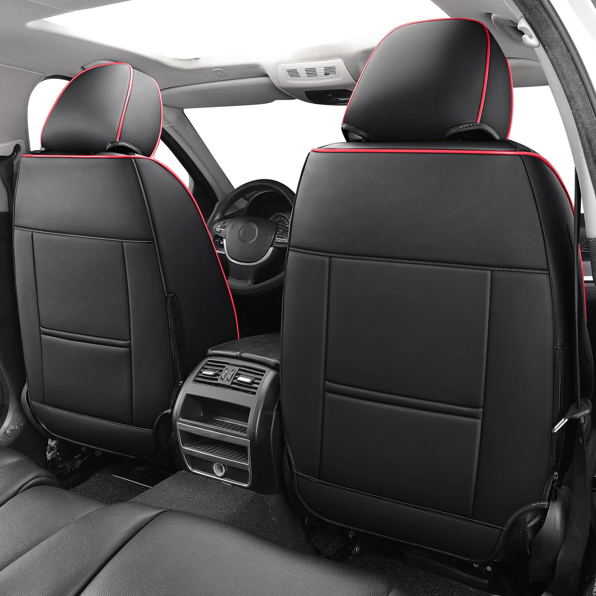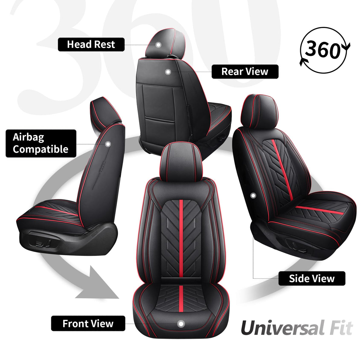 Tomatoman Car Seat Covers for most Car Sedan Truck Van Pickup SUVBrand:TomatomanColors:Black,Black-Red,Black-Gray,Black-BlueFits:Universal FitsFeatures:Snug fits,like a golve,durable,stylish,creative,side zipper for easy to install,easy to clean and install,full coverageUniversal Fit and Full Protection:Fits for most vehicles,such as cars,sedans,hatchbacks,suv,pickup trucks,crew cab,vans,ev,and so onPerfect fits and stylish look:Side zipper for easy install.They will fit snug to your seat,comfortable,wear-resisting,durable,waterproof,non-slip bottom cloth is helpful to stay in placeCompatible airbags-The airbag has enough space to stretch and will never be blocked.The seat belt slot also has been reserved. Armrest compatible and not affect child safety seat.There is a pocket for easily store things like cellphone,laptop and magzines,which help to keep your goods organizedWhat you Expected-car seat cover will go stylish with your interior,which will bring lots of compliments to you,best gift for your husband,family,or friendsPlease read that manual or watch the installation video before you start to install the seat covers