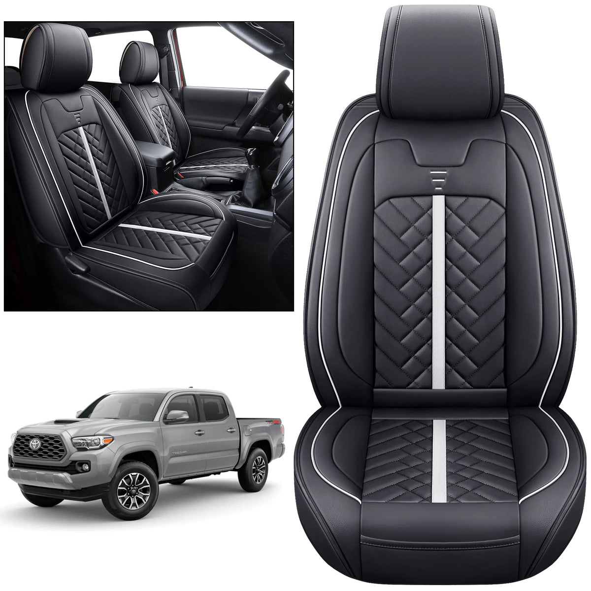 Tomatoman Tacoma Car Seat Covers-To be your best choiceFaux Leather-Waterproof,soft,and wear-resisting.Non-slip bottom cloth to ensure that the seat cover will not move when in use;We also bet it will become a Surprised gift for your family,friends,boyfriend and so onCustomized Fit For 2005-2025 Toyota Tacoma TRD Sport TRD Off-Road Limited SR SR5 Trail Edition TRD Pro Nightshade Double Cab Back to the Future TRD Pro Race TruckCompatible Airbags-The design of a side elastic belt allows the airbag to deploy in case of huge impact,ensuring safety and reliabilityEasy to install-Quality texture and feel with a perfect fit and easier to set.Color and style is a perfect fit for your taste;Please read that manual or watch the installation video before you start to install the seat coversTomatoman Guarantee-If any part of the product is lost or damaged,please feel free to contact us,we will solve the problem for you