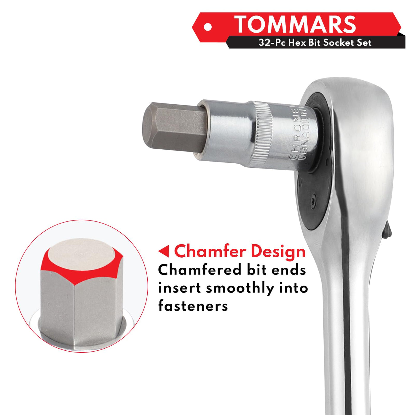 Q: Is this hex bit socket set compatible with a ratchet?A: Yes, the TOMMARS hex bit socket set is designed for compatibility with a ratchet. This makes it versatile and ideal for servicing a variety of vehicles and machinery.