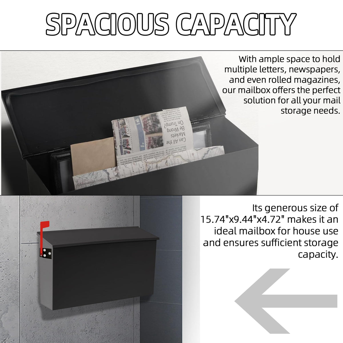 Tongass Wall-Mount Mailbox - Large Capacity, Rust-Proof Carbon Steel Post Box - Ideal For Outdoor Use - Mailboxes For House Outside Wall Mount - 15.74"X9.44"X4.72" Black