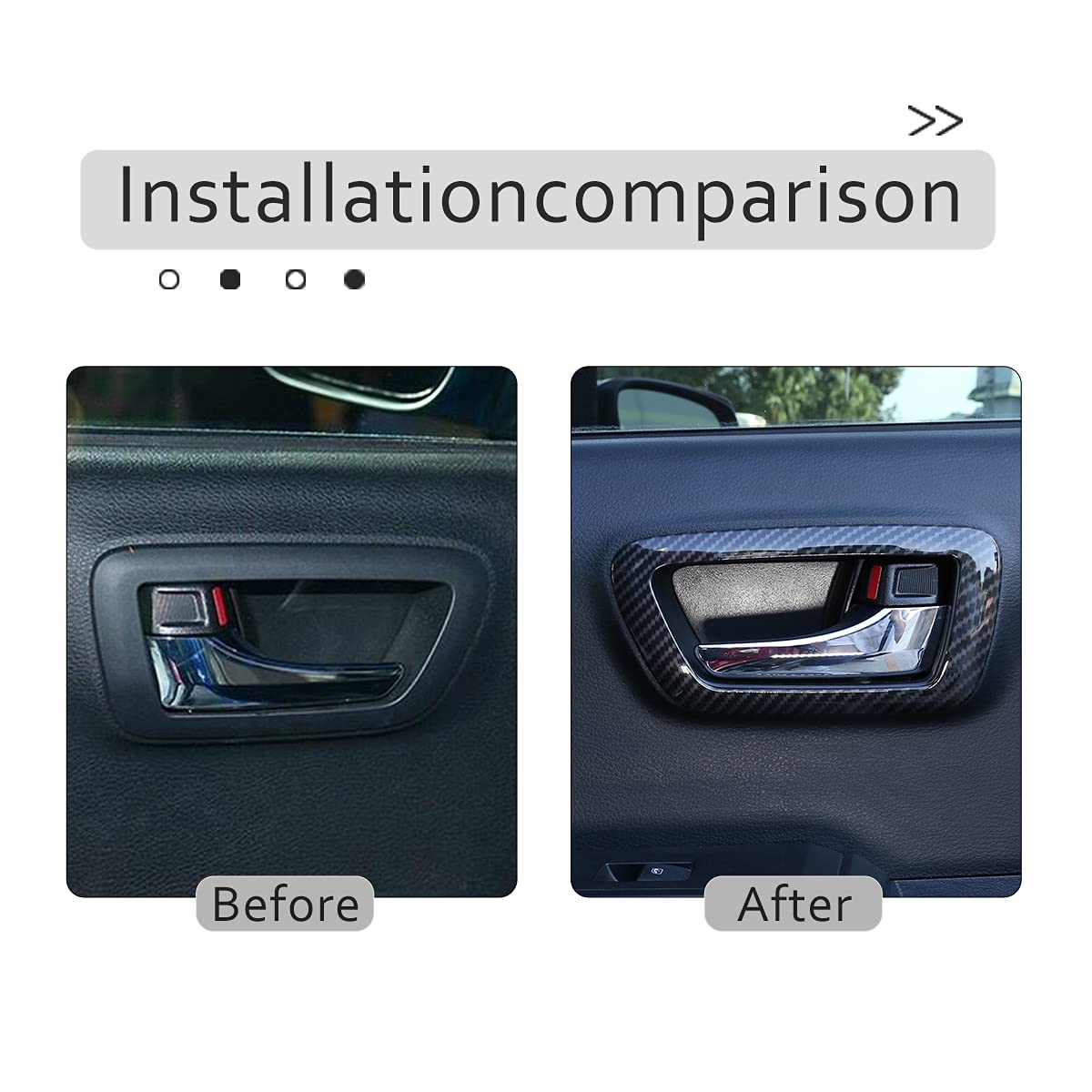??Easy Installation: 1.The Back Of The Door Handle Decoration Sticker Come With 3M Tape. 2.Wipe Clean The Around In Advance, And Keep Dry And Clean. 3.Tear Off The Tape And Press It Tightly, And The Installation Can Be Completed Quickly And Easily. 4.If The Weather Is Cold. Please Use The Hair Dryer(Hot Air Blowing)In Order To Provide The Best Viscous. 5.Please Keep Dry After Been Install At Least 72 Hours. Or It Will Easy To Fall Off.