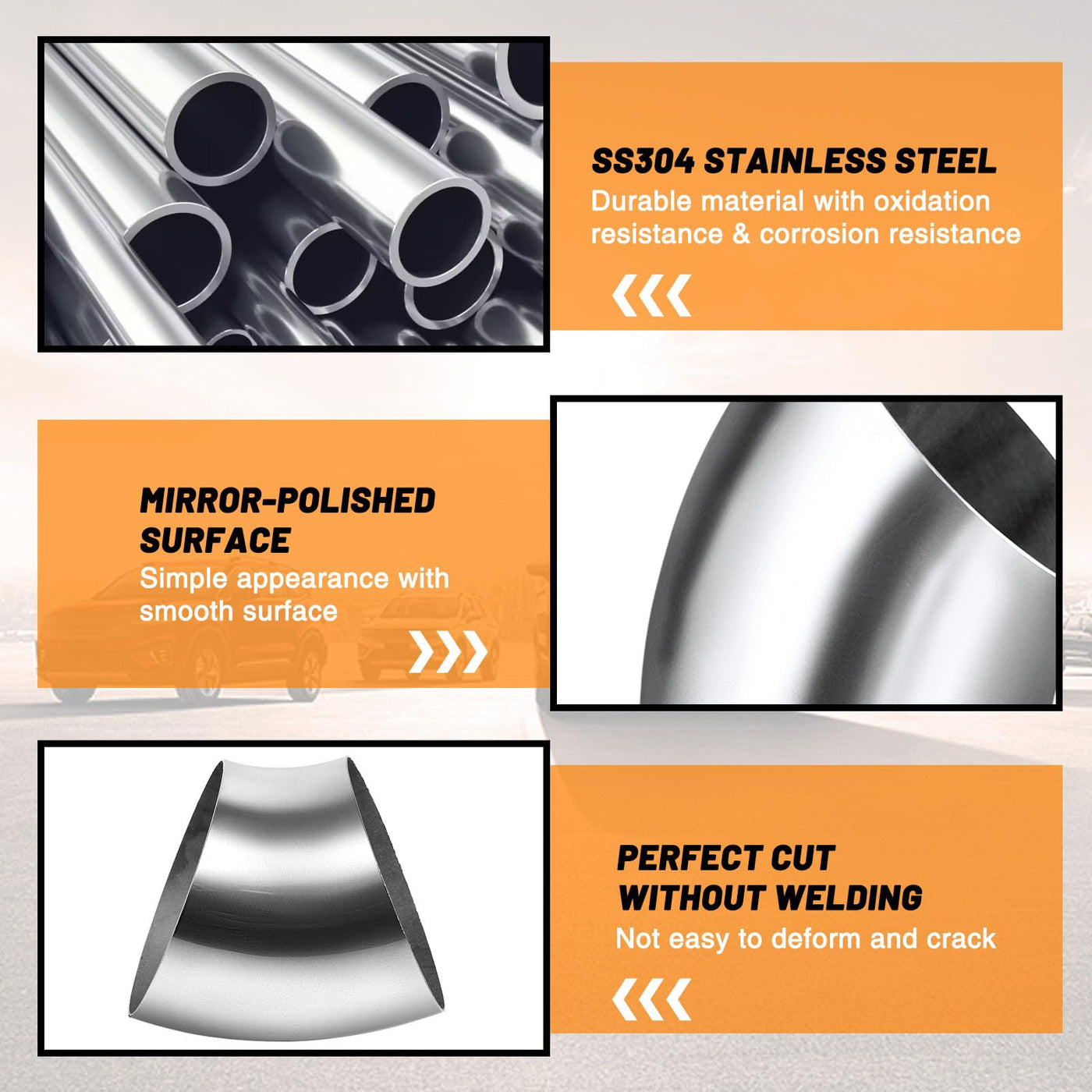 Tongze 3 Inch 45 Degree SS304 Stainless Steel Bend Tube Exhaust Elbow Pipe for Car Customized Modified Exhaust System-4pcs