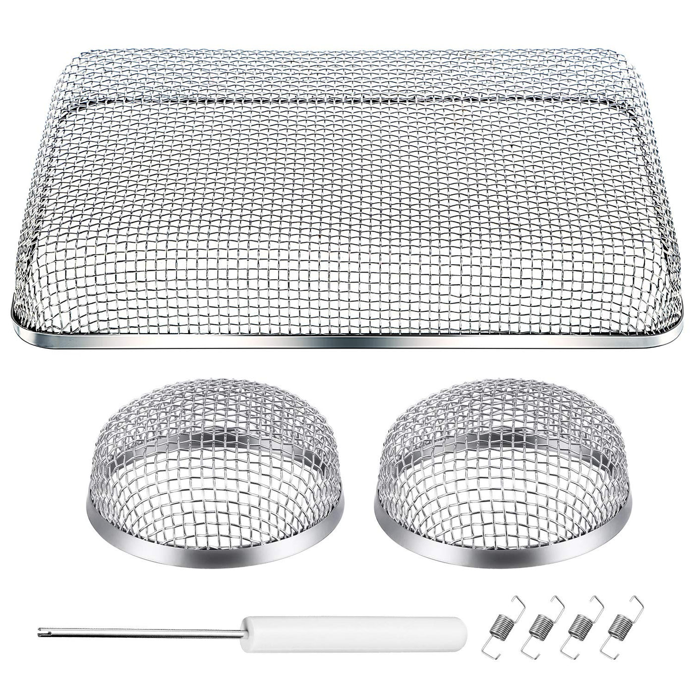 TOODOO 3 pack flying insect screen rv furnace vent cover (2.8 inch)(8.5 x 6 inch) stainless steel mesh with installation tool Function: These handy metal screen effectively keeps out wasps, mud daubers, rats, mice, birds and rodents pose a serious threat to the furnace vents on your RV. Easy to operate: The easy installation will ensure that your furnace vent stay away from costly invasion by unwanted pests. Usage: The screen design fits for Atwood furnace vent models 2540, 8516, 8520, 8525, 8531, 8535 and 8940. And also fits for Suburban 6, 10 and 12 gallon water heater vents and most battery vents. Specification: Material: stainless steel Screen size: Circular : Length x Width: 8.5 x 6 inch Height: 1.3 inch Rectangular: Diameter: 2.8 inch Height: 1.8 inch Each mesh grid: 0.3 inch Note: Please check the make and model of your RV and furnace or water heater system carefully to ensure the product is a good match before installation Package includes: 1 x Rectangular Stainless steel mesh cover 2 x Circular Stainless steel mesh cover 4 x Spring hook 1 x Installation tool Warm notice: The mention of furnace vent cover's brand names and any related models above is only for purposes of demonstrating compatibility.