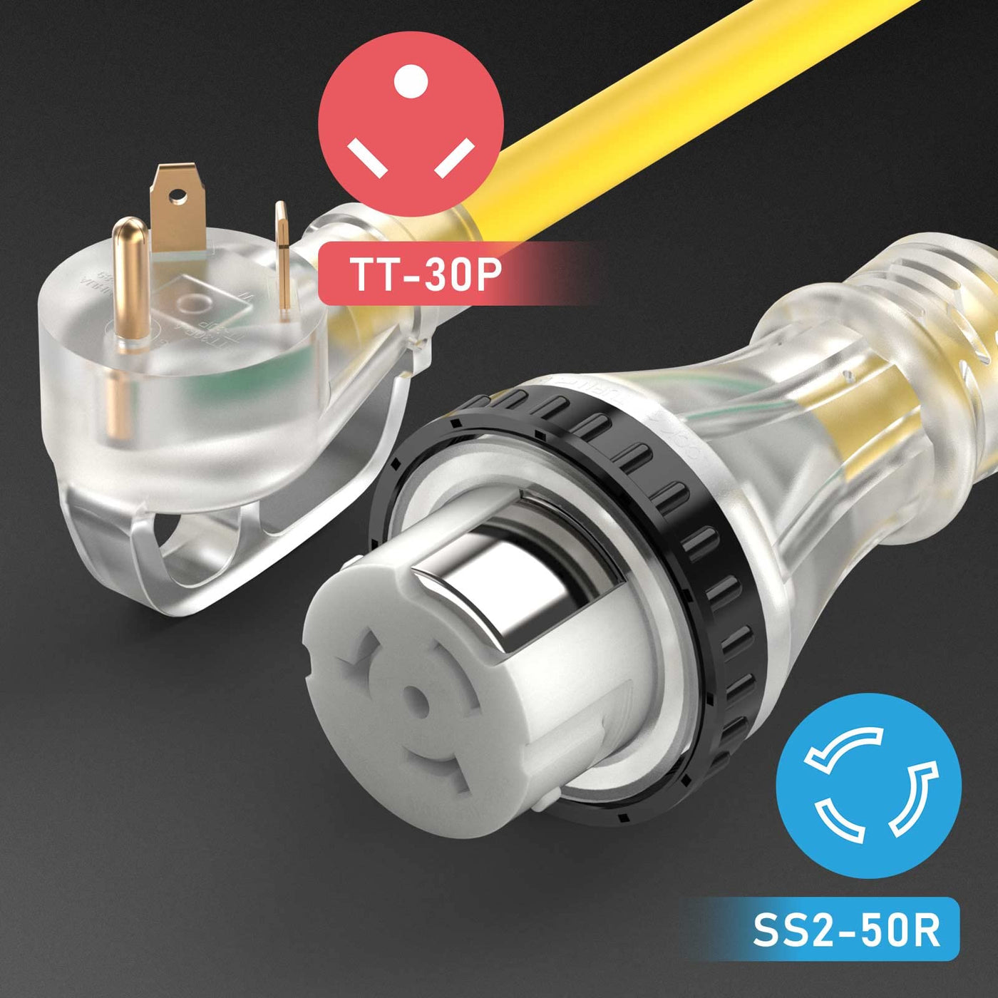 TOOLIOM 30 Amp to 50 Amp RV Power Adapter, 50Amp to 30Amp RV Plug, NEMA TT-30P Male to SS2-50R Female with Handle Grip 12 Inch S