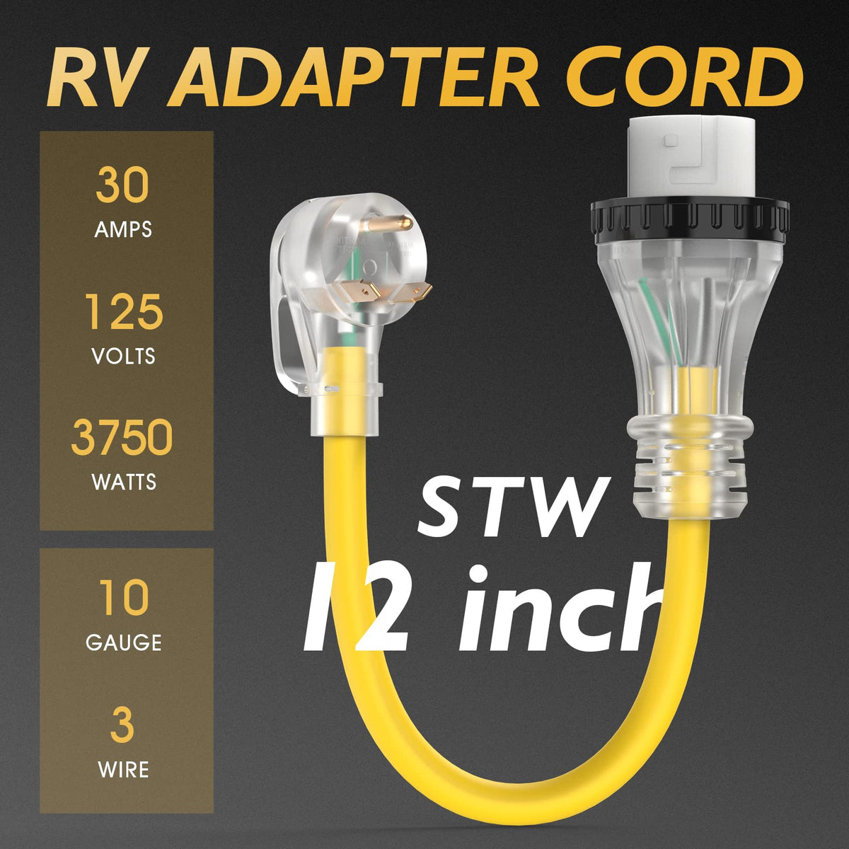 TOOLIOM 30 Amp to 50 Amp RV Power Adapter, 50Amp to 30Amp RV Adapter Plug, NEMA TT-30P Male to SS2-50R Female with Handle Grip 12 Inch STW 10 Gauge Dogbone Electrical Plug Converter for Camper RV Trailer