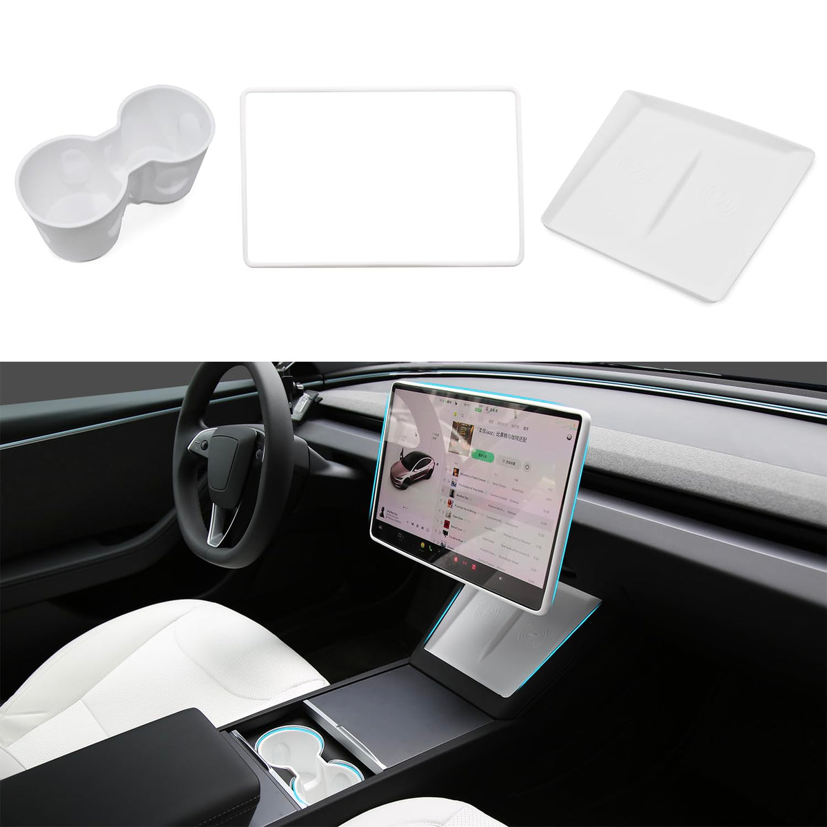 TOPABYTE 3PCS Center Console Accessories for Tesla Model Y Juniper Model 3 Highland 2025 2024 Cup Holder Insert, Screen Edge Pro