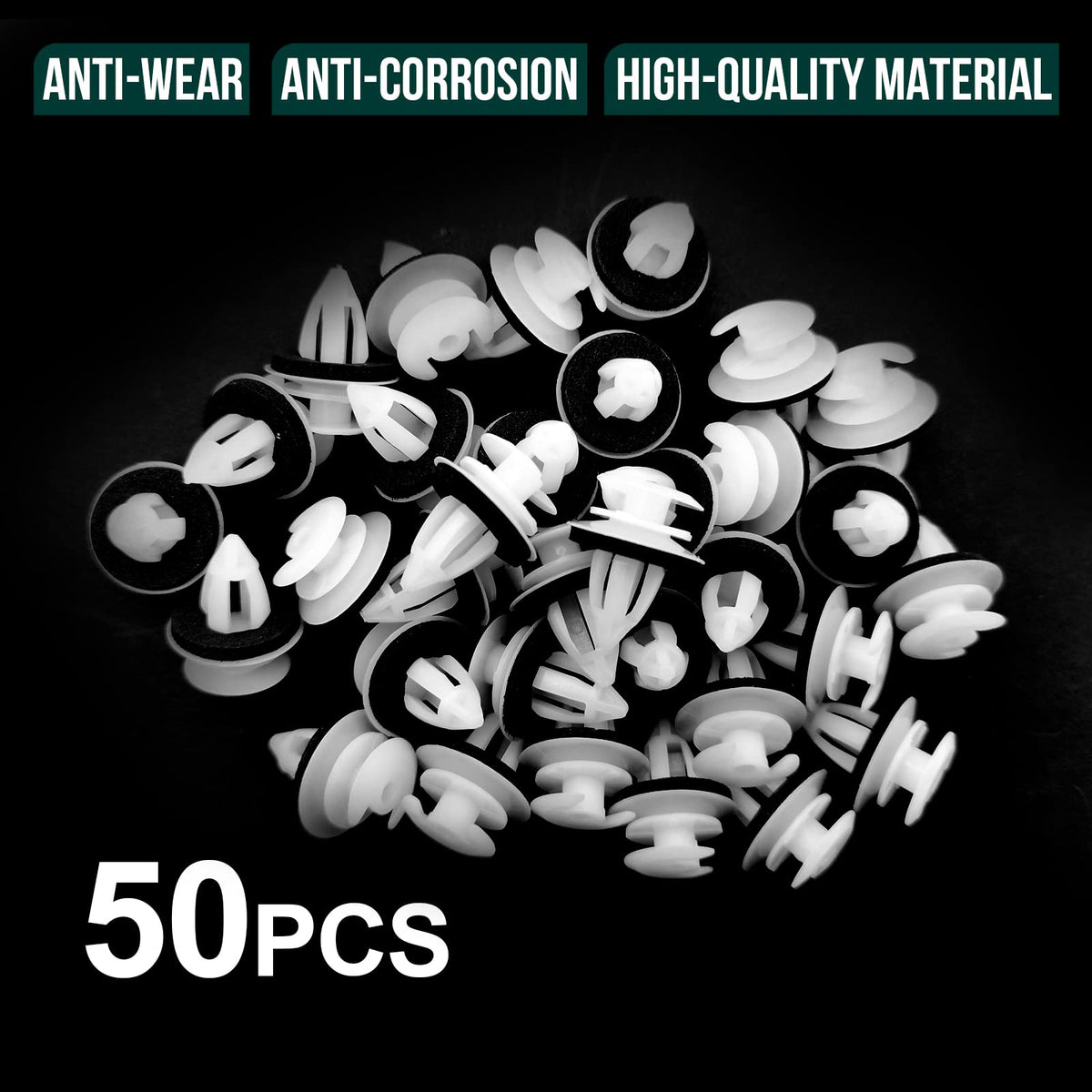 Q: How many clips are included in the package?A: Each package of TOPCNOEM Door Trim Panel Retainer Clips includes 50 pieces, providing you with enough clips for multiple installations or replacements.