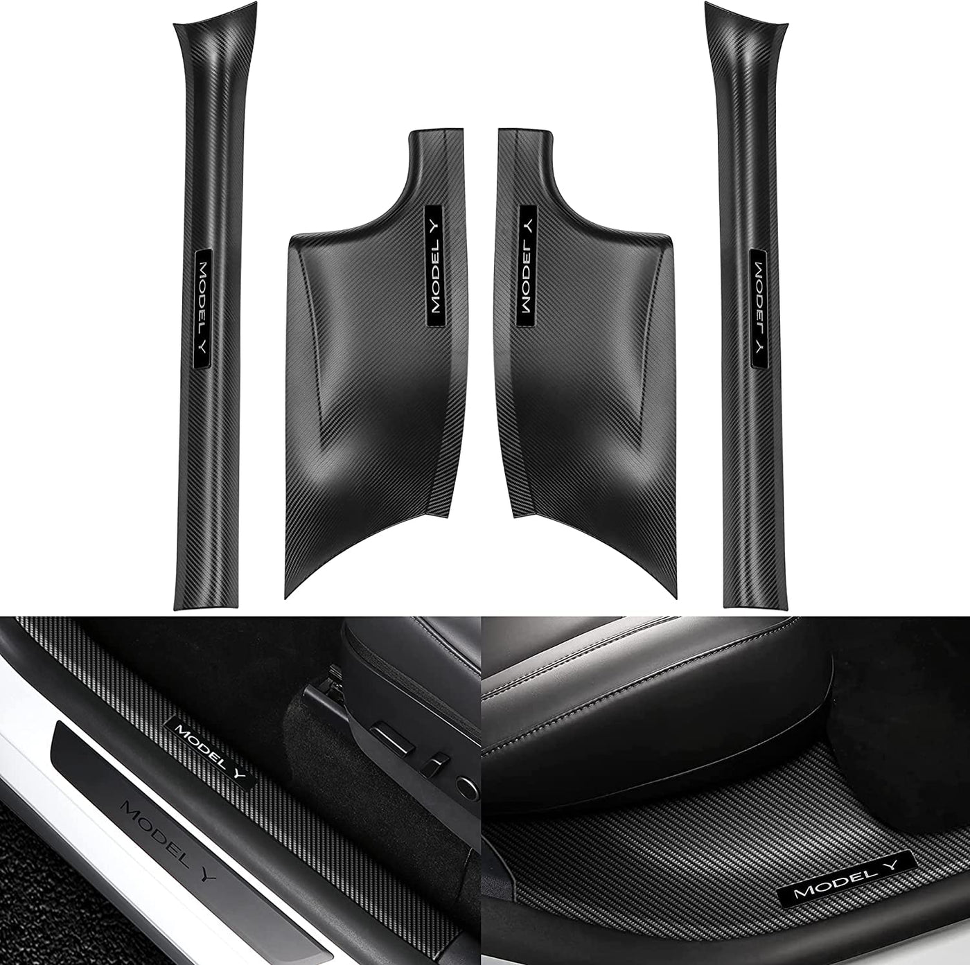 Topfit For Tesla Model Y Door Sill Protector 5 Seater (Not Fit 7 Seater) Carbon Fiber Front And Rear Door Car Pedal Kick Protection Strip Styling Covers Accessories(4 Packs)
