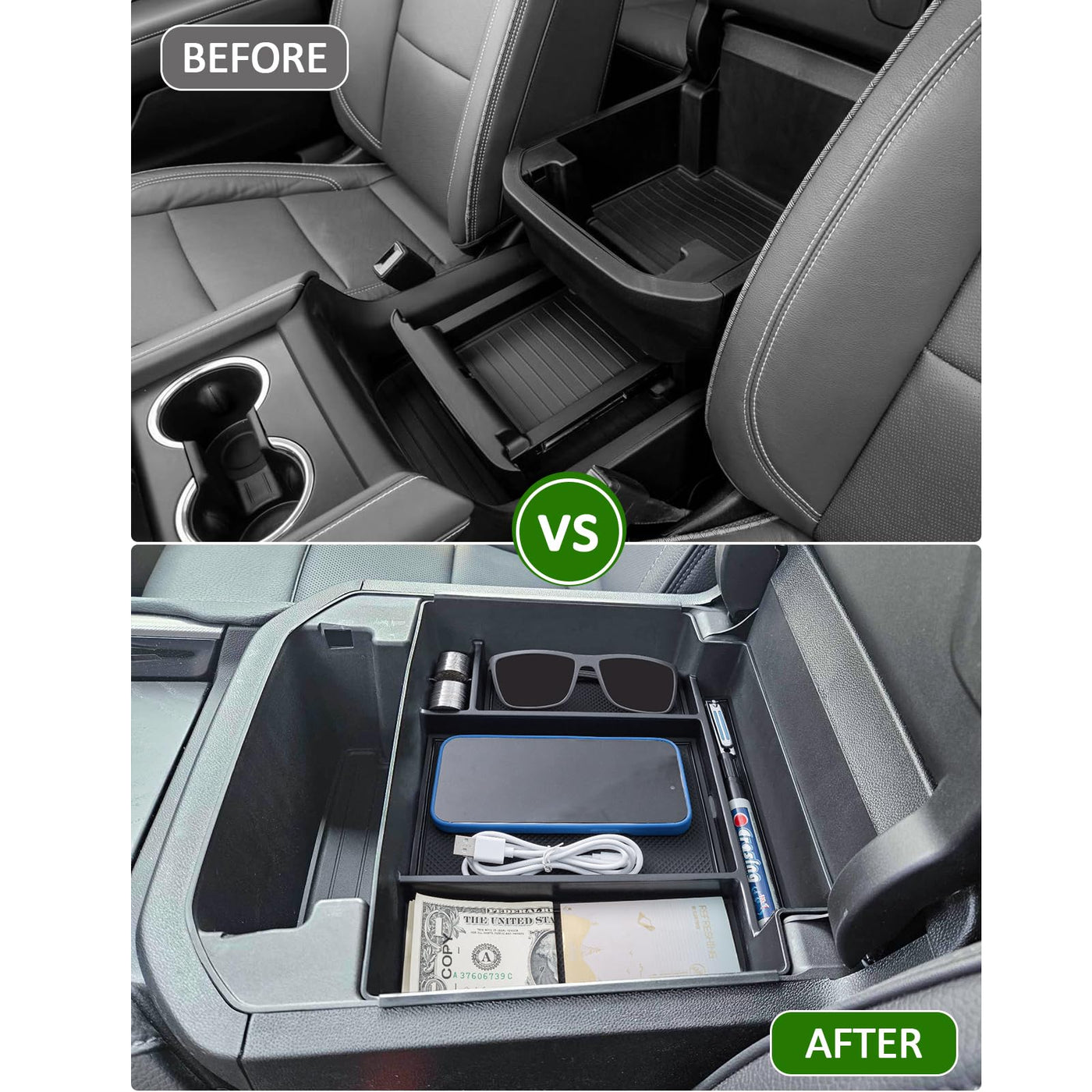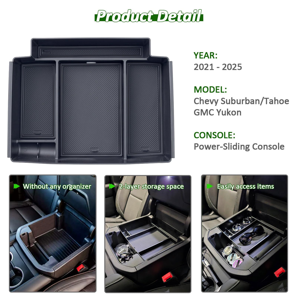 As you know, 2021 2022 2023 2024 2025 Suburban/Tahoe/Yukon with the Power-Sliding Console didn't come with any organizer, so we made this for you! Say goodbye to the deep and messy bin, enjoy your driving life.
