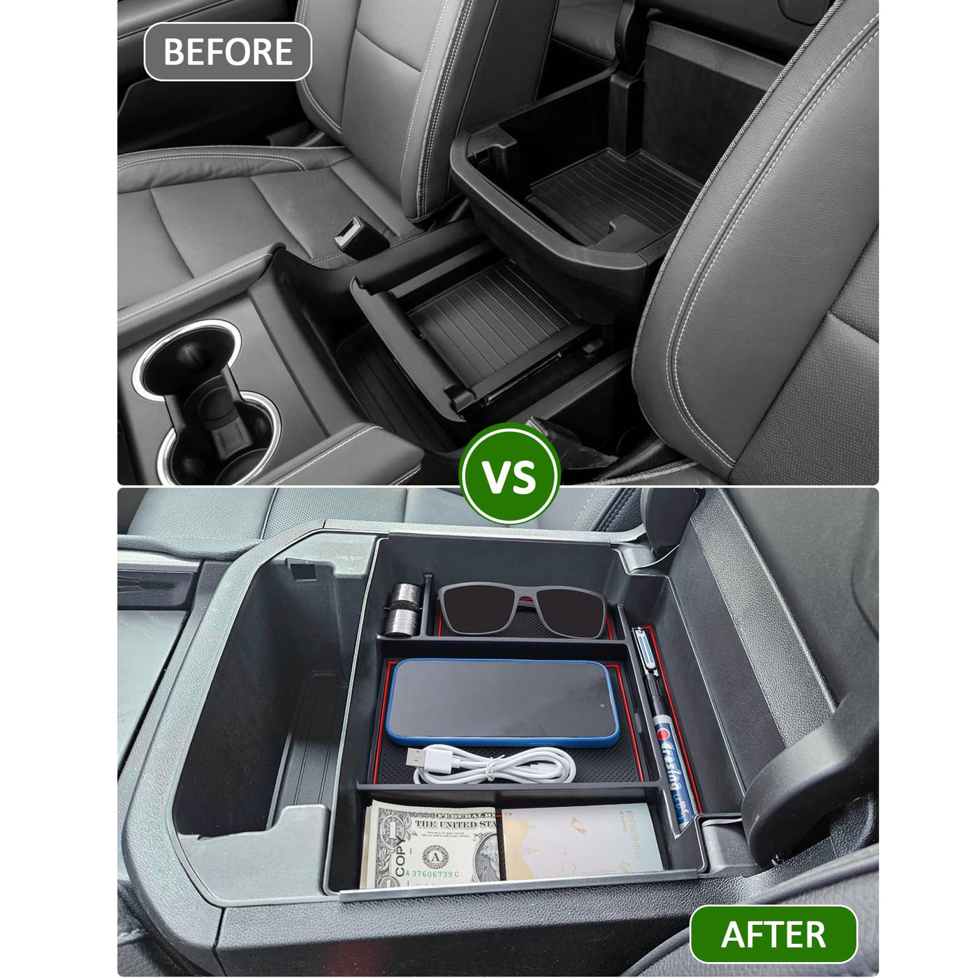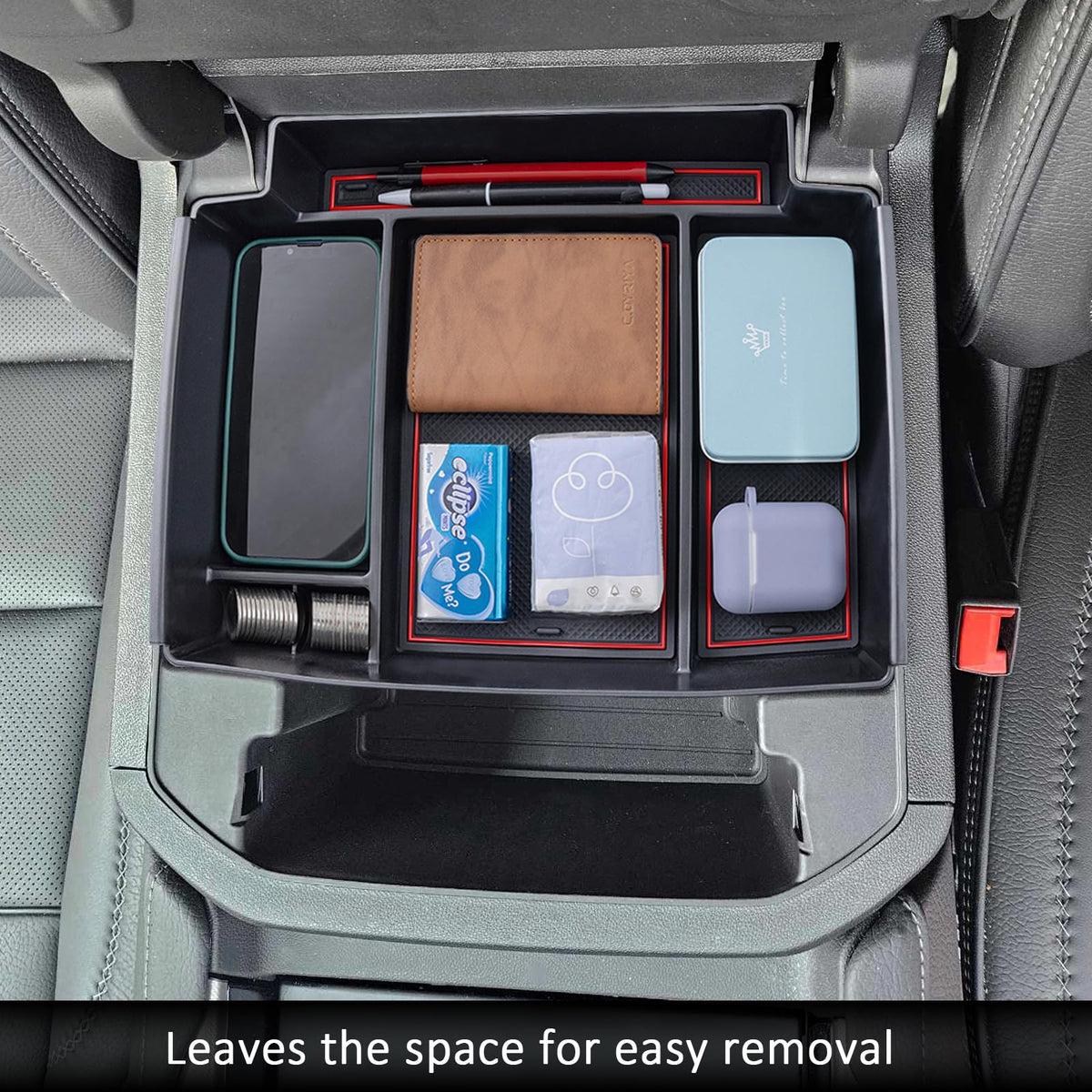Topinstall Red Power-Sliding Console Tray Compatible With 2021-2025 Chevy Tahoe/Suburban/Gmc Yukon Accessories, Full-Size Armres