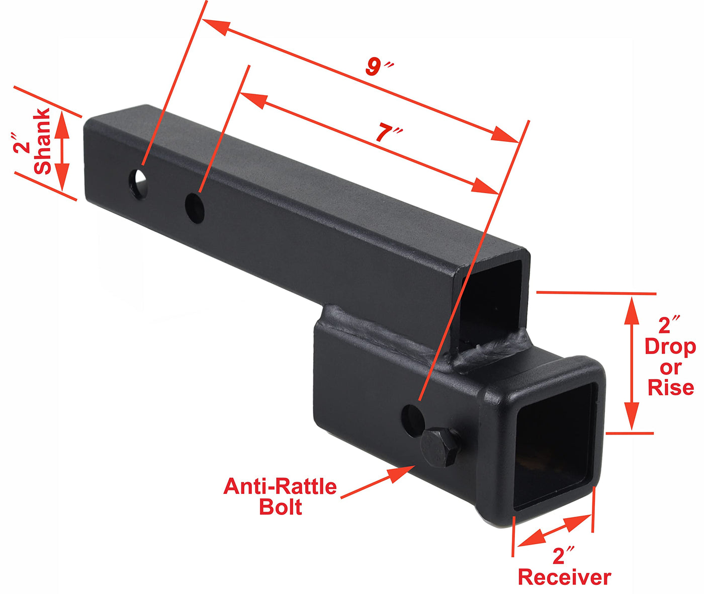 TOPTOW is a well experienced manufacturer of towing accessories. We only offer our customers our best. The Hitch Extender has been designed to extend 7 or 9 inches clearance to a recessed receiver, therefore the extender can give you an extra room to tow a trailer, a boat or a camper. It also Features a 2.25 inch drop or rise to accommodate vehicles that are too high or too low. TOPTOW Hitch riser can provide a maximum 7500lbs gross tongue weight, and 350lbs tongue weight. The robotic weld all the way around there keeps everything locked together. We guarantee all the products are crafted according to the standard, and all of them are durable and trustable.