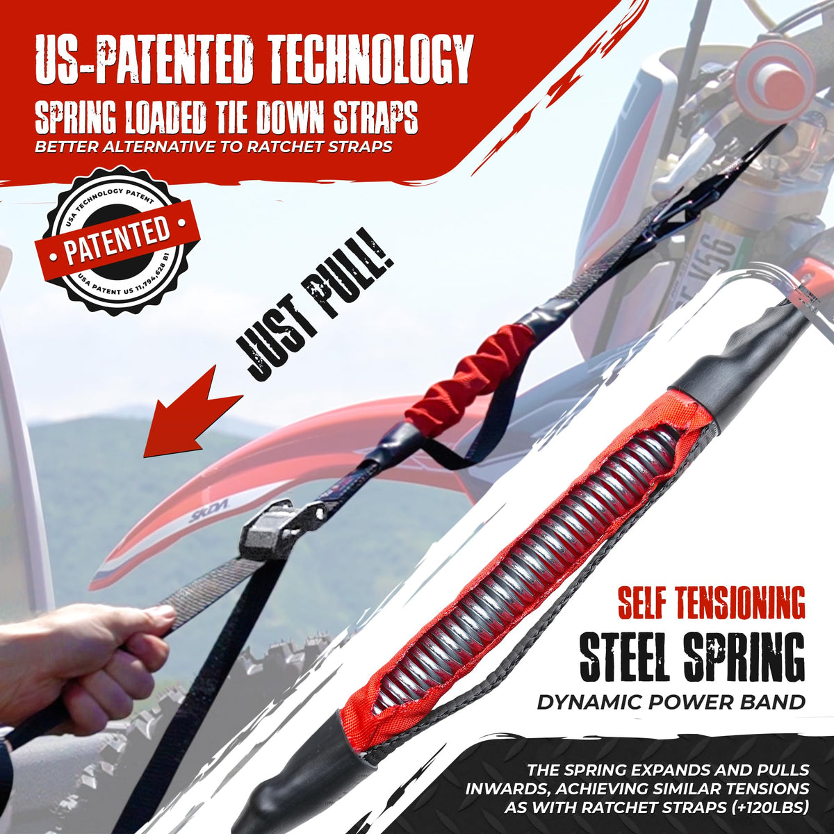 Innovative Hybrid Design: At TorkStrap we've combined the ease of bungee cords with the strength of ratchet straps, creating a hybrid tie-down that simplifies your cargo securing process. No more fumbling with hooks, ratchets, or complex mechanisms - TorkStrap does it differently. Adaptive Technology: Thanks to our patent-pending adaptive technology, TorkStrap adjusts to load shifts during transport. This means your cargo stays securely fastened without constant readjustment. Whether you're moving heavy items, using it as moving straps, or securing gear for an outdoor adventure, TorkStrap's innovative design ensures peace of mind. Strength and Reliability: Our TorkStrap Model 500 is engineered for exceptional performance. With an impressive 10-foot length, it boasts a 500lbs Safe Work Load and a robust 1,500LBs Max Load. This means you can rely on TorkStrap for a wide range of applications, from securing your ATV, truck accessories, and motorbike to transporting a kayak or even the cherished Christmas tree during the holidays. TorkStrap can handle it all. Versatility in Action: TorkStrap isn't limited to one use. It's perfect for trucks, whether you need to strap down cargo or secure your accessories. Motorbike enthusiasts and off-road adventurers appreciate its reliability when hitting the trails. Kayaking trips become stress-free with TorkStrap's secure hold, and even your Christmas tree can make it home safely without a hitch. Choose Your Level: TorkStrap offers flexibility with options for both standard and PLATINUM models, catering to various load requirements. We understand that not all cargo is the same, so we've designed our straps to meet your specific needs. Proudly Made in the USA: Quality matters to us, which is why TorkStrap is handcrafted in the USA using a combination of foreign and domestic parts. By choosing TorkStrap, you're not only investing in a superior cargo securing solution but also supporting local craftsmanship.