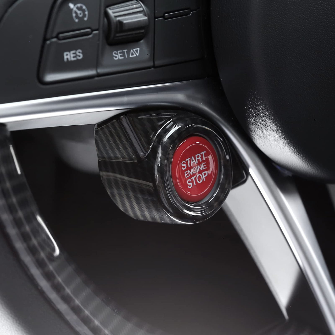 Toycidfg Car Engine Start Stop Button Frame Cover Trim For Alfa Romeo Stelvio 2017-2018/Giulia 2016-2018 Auto Accessories (Carbon Fiber Pattern)