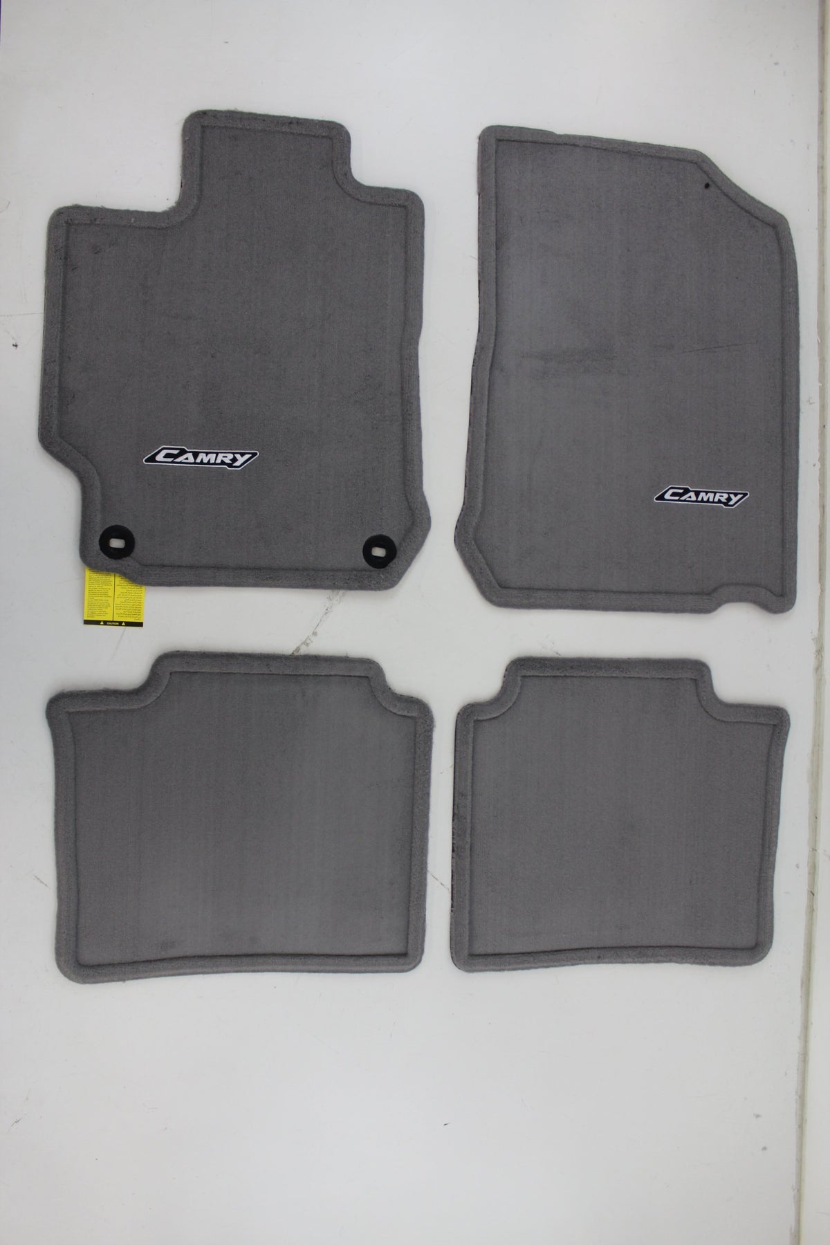 Color coordinated floor mats protect your original carpeting while adding some flare with the Camry embroidered logo. The non-skid backing and positive retention clip help prevent them from sliding. Carpet floor mats are custom fitted to vehicle floor pattern. Enhances interior appearance and provide optimal protection to original carpet. No-slip, nibbed underside prevent mats from sliding. Embroidered with Camry logo. Color matched to vehicle interior; available in ash, dark charcoal and bisque. Constructed of high grade plush nylon carpeting. Helps keep original interior carpet clean. Long lasting Toyota quality.