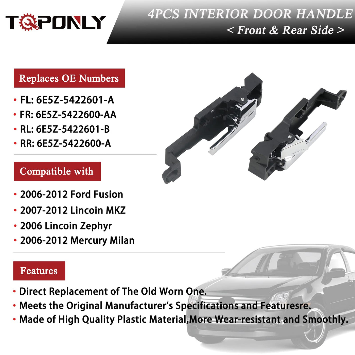 TQPONLY Front/Rear Interior Door Handle Left & Right Side (4 Pcs) Compatible with 2006-2012 Ford Fusion,2007-2012 Lincoin MKZ,20
