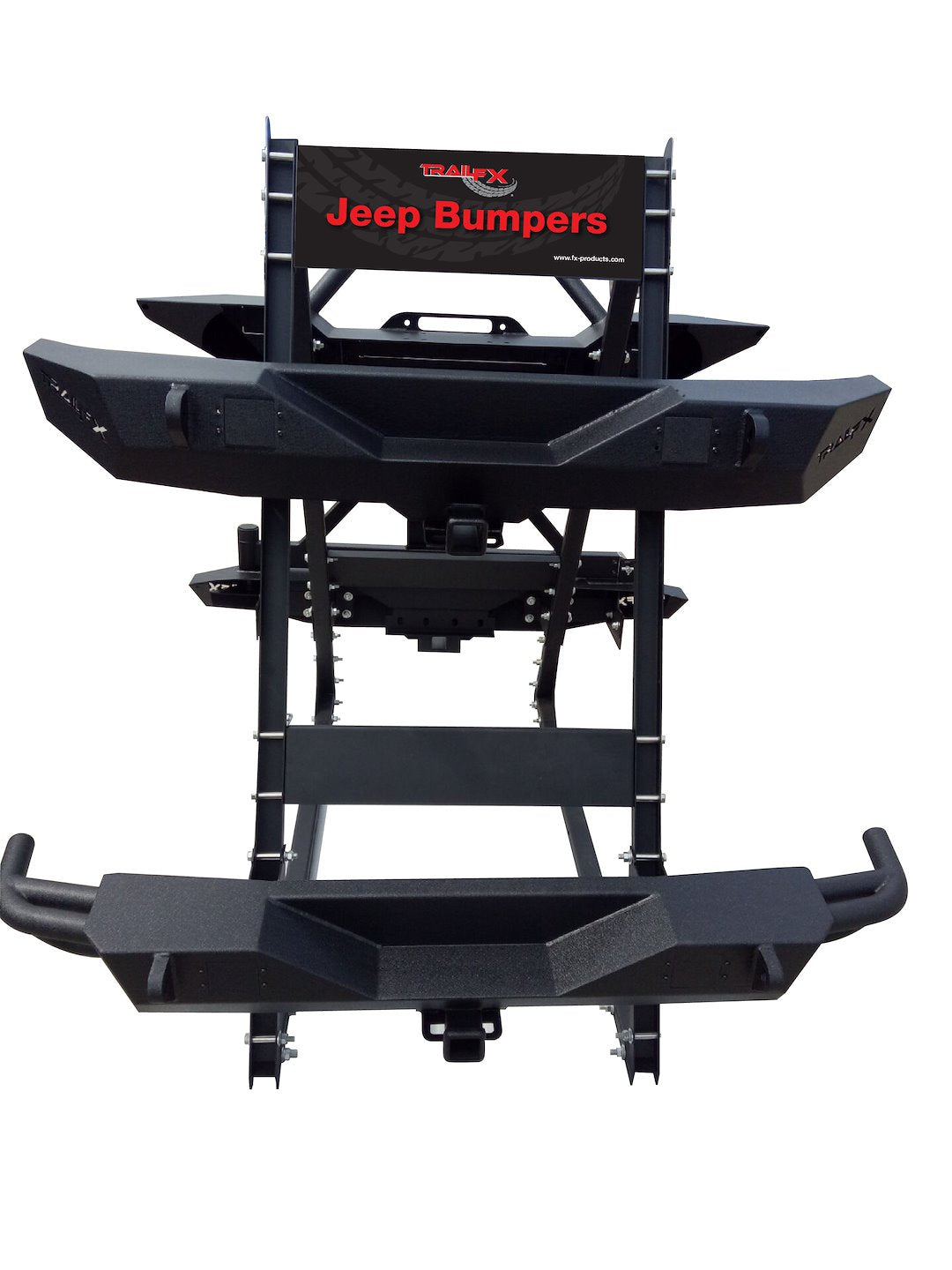 Q: What is the Trail FX QD1000JB Display Rack designed for?A: The Trail FX QD1000JB Display Rack is specifically designed for displaying Jeep bumpers, providing a sturdy and organized solution for showcasing your automotive accessories.