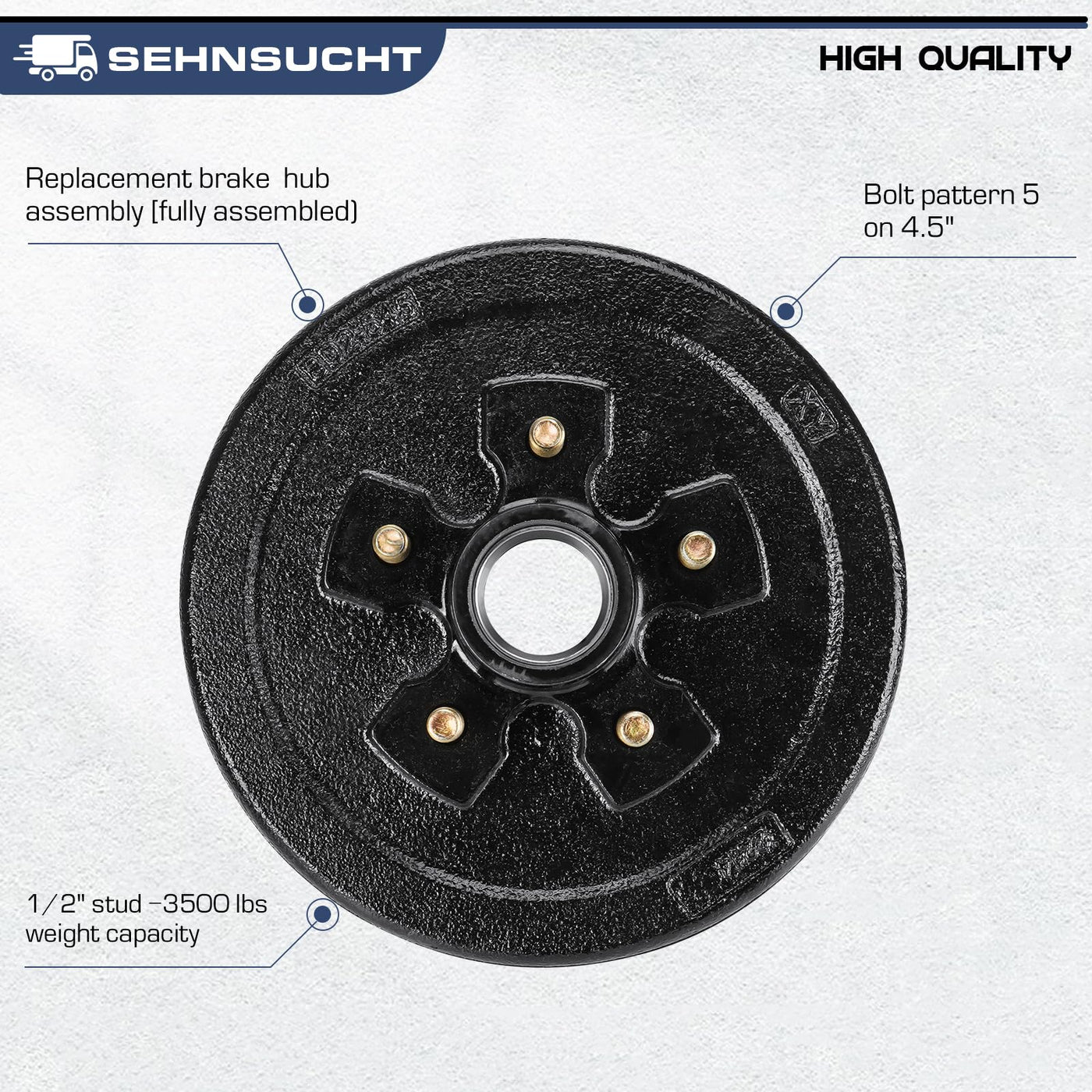 SEHNSUCHT Trailer Axle Electric Brake Kit fit for 3500 lb Axles Replacement 10 Brake Hub Drum Assembly for Rvs, Trailer and Semi Truck Package Including: 2*brake drum 5*4.5'' 2*Bearing inner ring replace for L68149, 2*Bearing inner ring replace for L44649 2*grease seal, 2*dust cover, 2*rubber plug dust cover 10*hub nut 1*left electric brake, 1*right electric brake 8*spring washer, 8*nut 2* hexagon slotted nut, 2*flat washer, 2* cotter pin Please check your vehicle Axle size before you order avoid to our product make trouble to you.